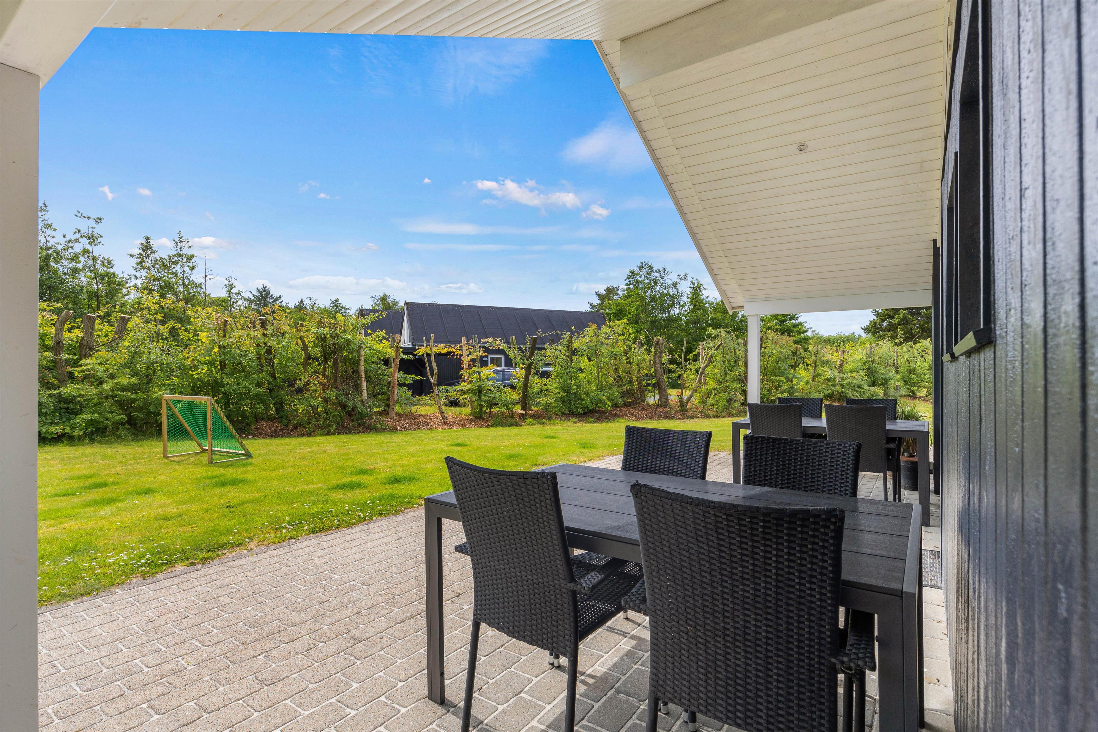 Udendørs byder sommerhuset på en indbydende kombination af både åbne og overdækkede terrasser, hvilket giver jer mulighed for at nyde udendørslivet uanset vejret.