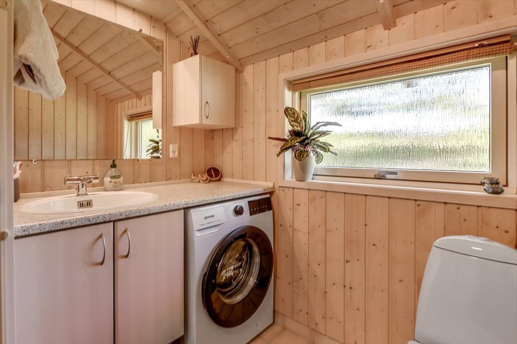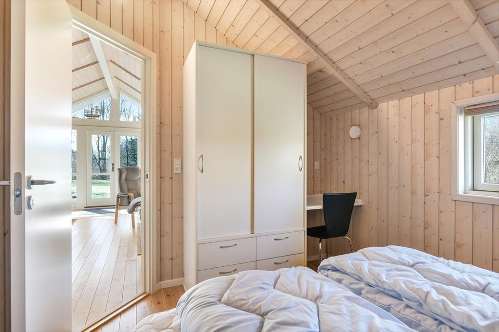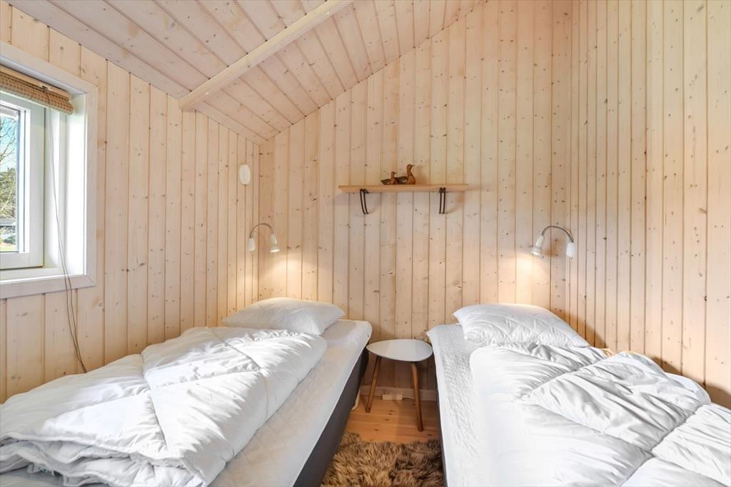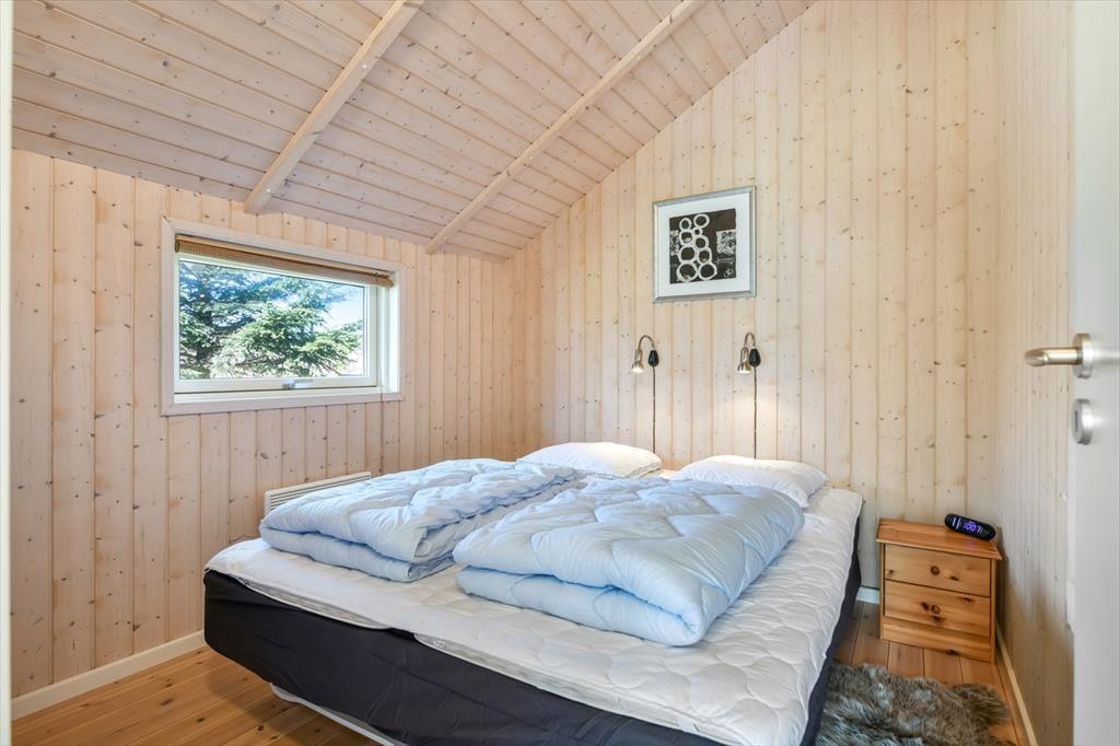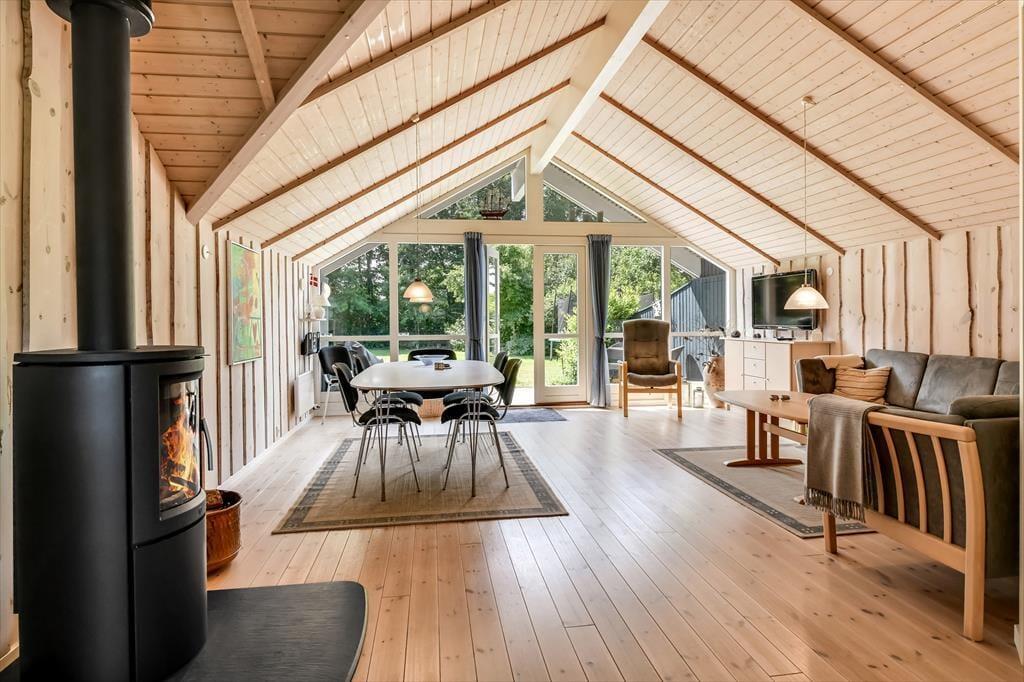Træd ind i et lyst og venligt sommerhus, hvor indretningen indbyder til afslapning og kvalitetstid. De store vinduespartier lukker dagslyset ind og giver et dejligt kig ud til haven og den omkringliggende natur. Køkken og stue ligger i åben forbindelse, så hele familien kan være sammen – uanset om I laver mad, spiller spil eller slapper af med en god film. Indretningen er funktionel og hyggelig, og der er tænkt på, at I skal føle jer hjemme fra første ferieøjeblik. Varmen fra brændeovnen spreder sig hurtigt og gør det ekstra rart at nyde en stille stund, når aftenen falder på. Her er det let at koble af og lade ferieroen sænke sig.