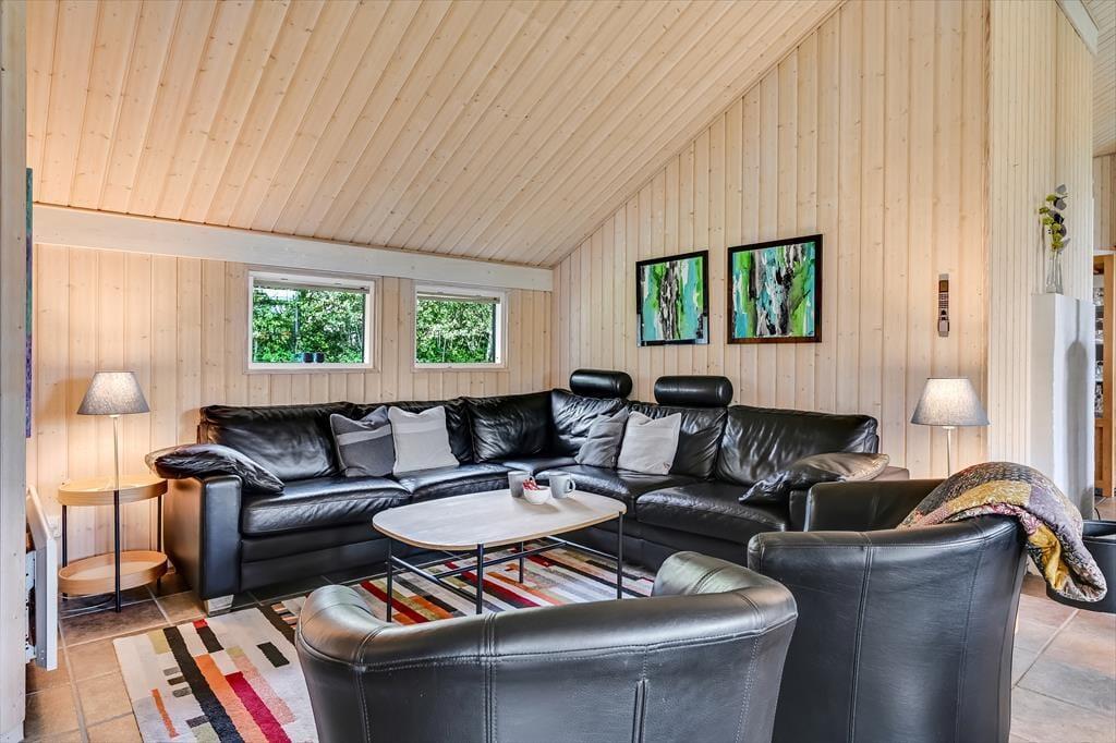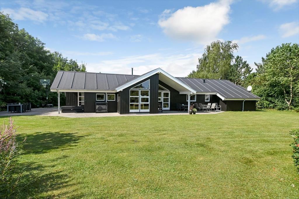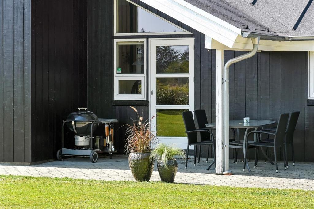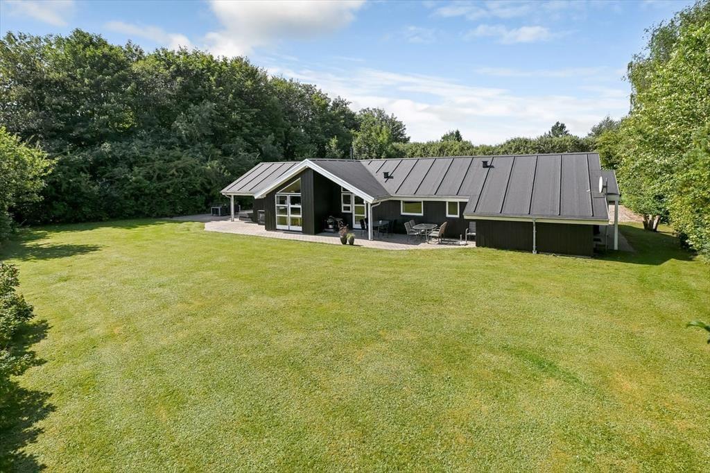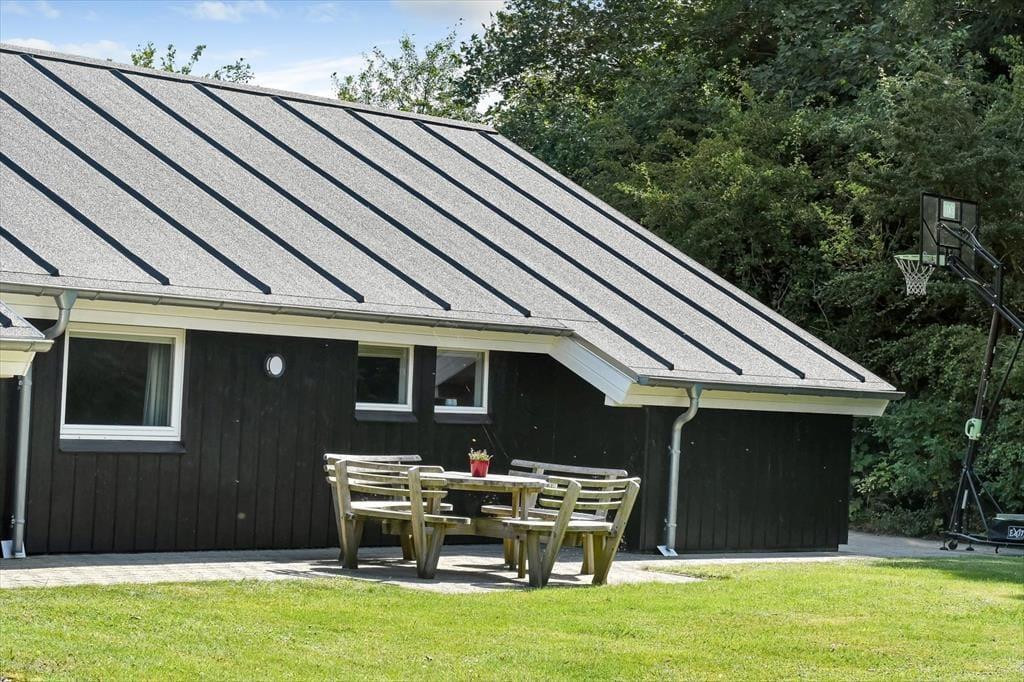 Sommerhusets placering op mod et fredeligt markområde giver en skøn følelse af at være tæt på naturen. Fra terrassen kan du nyde udsigten til det åbne landskab, mens du lytter til fuglesang og mærker den friske luft. Terrassen er delvist overdækket, så du altid kan finde både sol og skygge – perfekt til både morgenkaffen og de lange sommeraftener med grill og gode samtaler. Her er der plads til at læne sig tilbage og koble af, hvad enten det er med en god bog, et glas vin eller bare tankerne, der får lov at vandre frit. Med de grønne omgivelser omkring dig og aktivitetsmulighederne lige ved hånden, er det let at finde feriefølelsen – både når du søger ro og når du har lyst til leg og samvær.