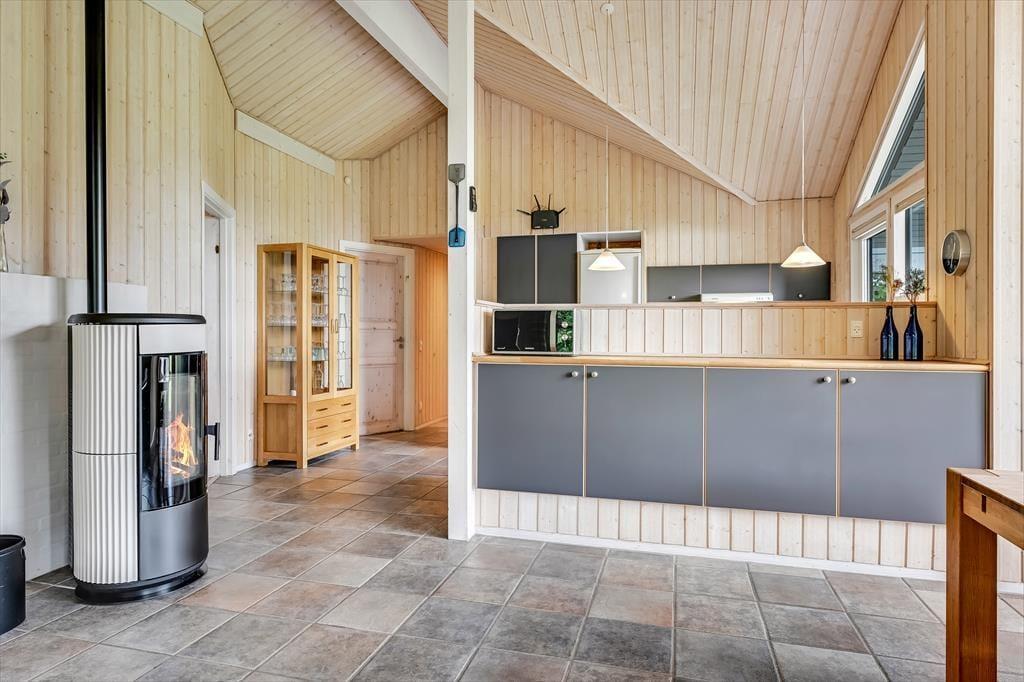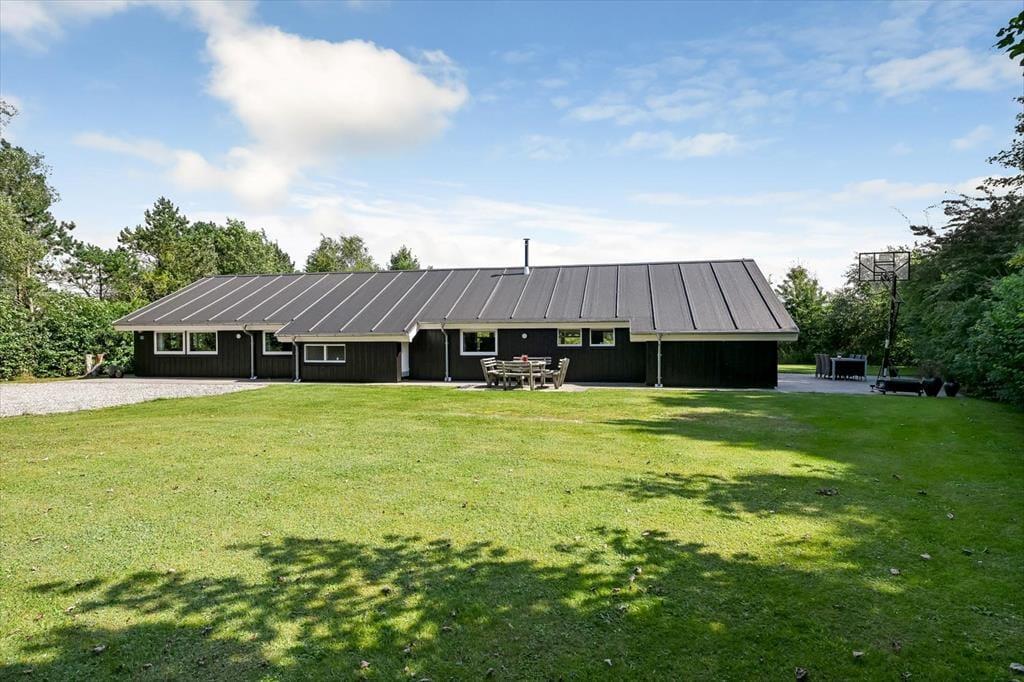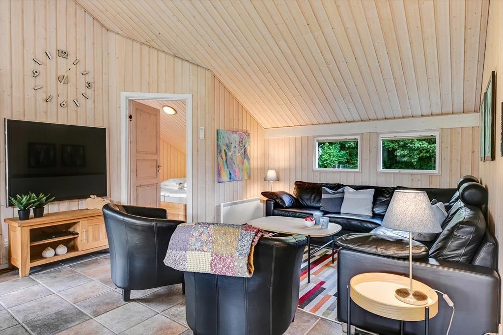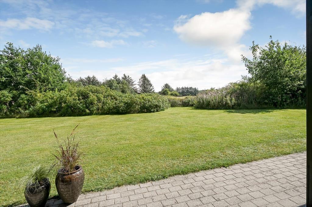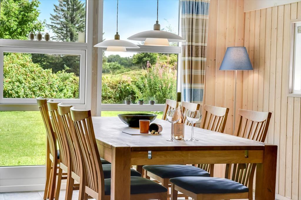 Sommerhusets placering op mod et fredeligt markområde giver en skøn følelse af at være tæt på naturen. Fra terrassen kan du nyde udsigten til det åbne landskab, mens du lytter til fuglesang og mærker den friske luft. Terrassen er delvist overdækket, så du altid kan finde både sol og skygge – perfekt til både morgenkaffen og de lange sommeraftener med grill og gode samtaler. Her er der plads til at læne sig tilbage og koble af, hvad enten det er med en god bog, et glas vin eller bare tankerne, der får lov at vandre frit. Med de grønne omgivelser omkring dig og aktivitetsmulighederne lige ved hånden, er det let at finde feriefølelsen – både når du søger ro og når du har lyst til leg og samvær.