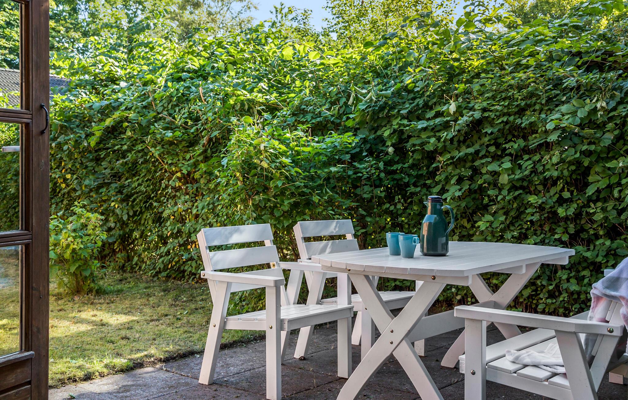 Glæd jer også til lange og lune sommeraftener på terrassen. I har adgang til tre terrasser, hvor I kan grille eller se børnene lege i haven. Den nærliggende sandstrand ligger kun en kort gåtur væk og er ideel til afslappende familiedage ved stranden.
