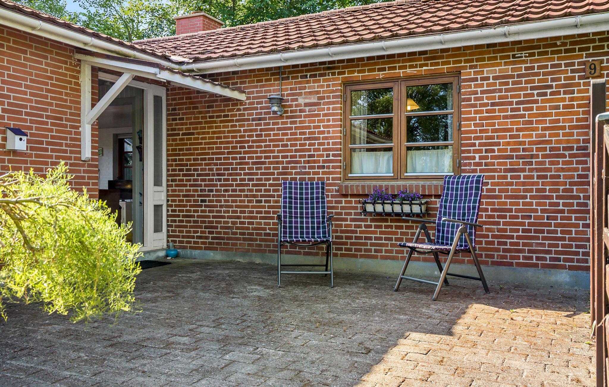 Hyggeligt feriehus ved Jerup Strand med privat have og tre terrasser til afslapning.