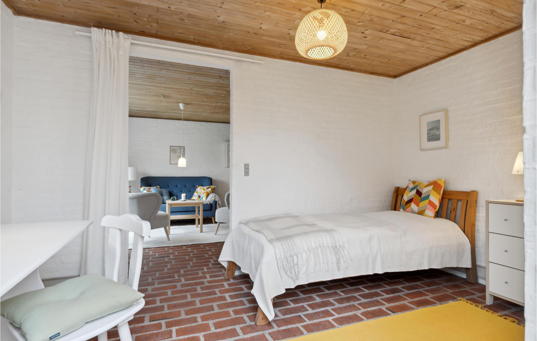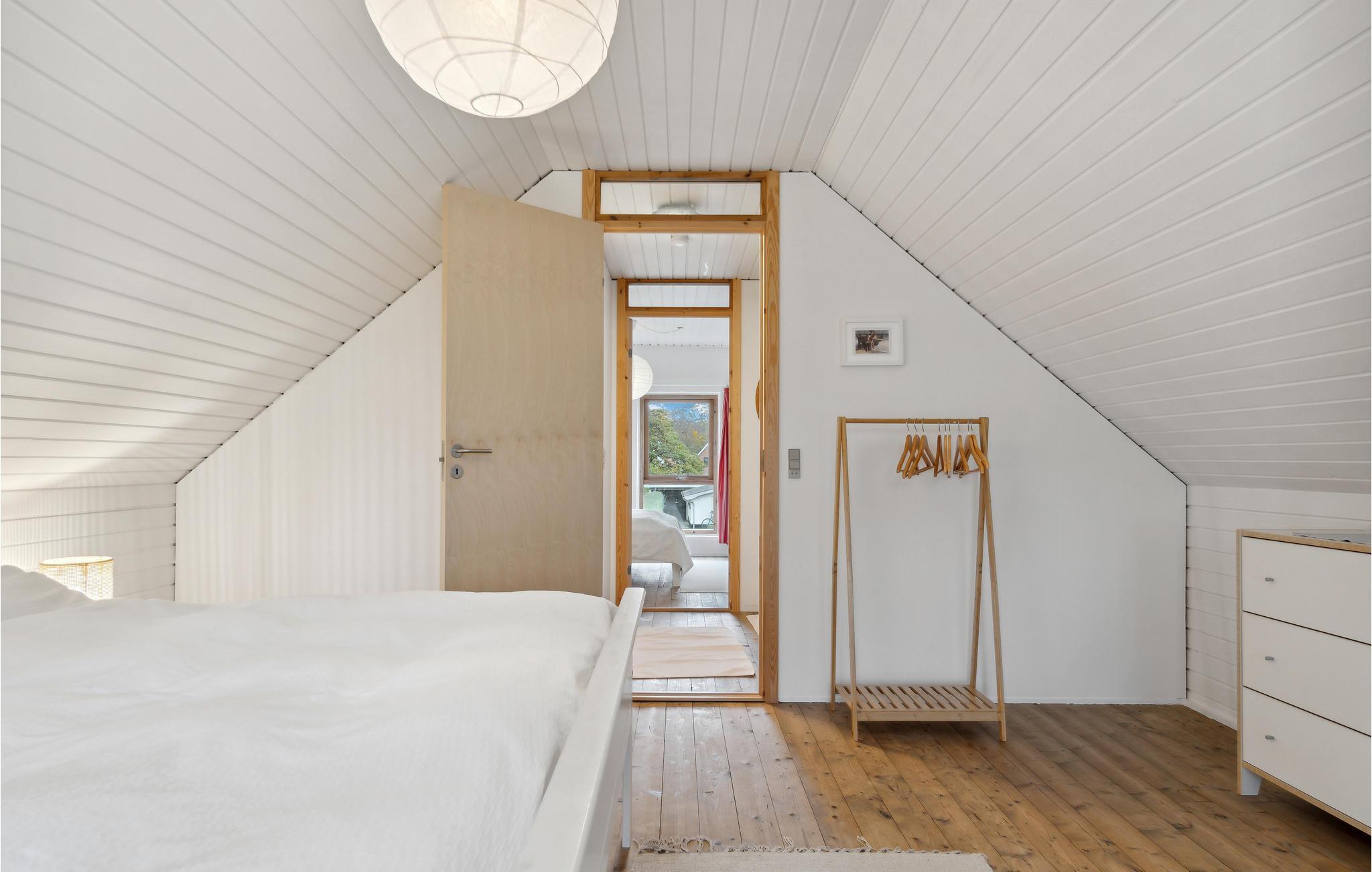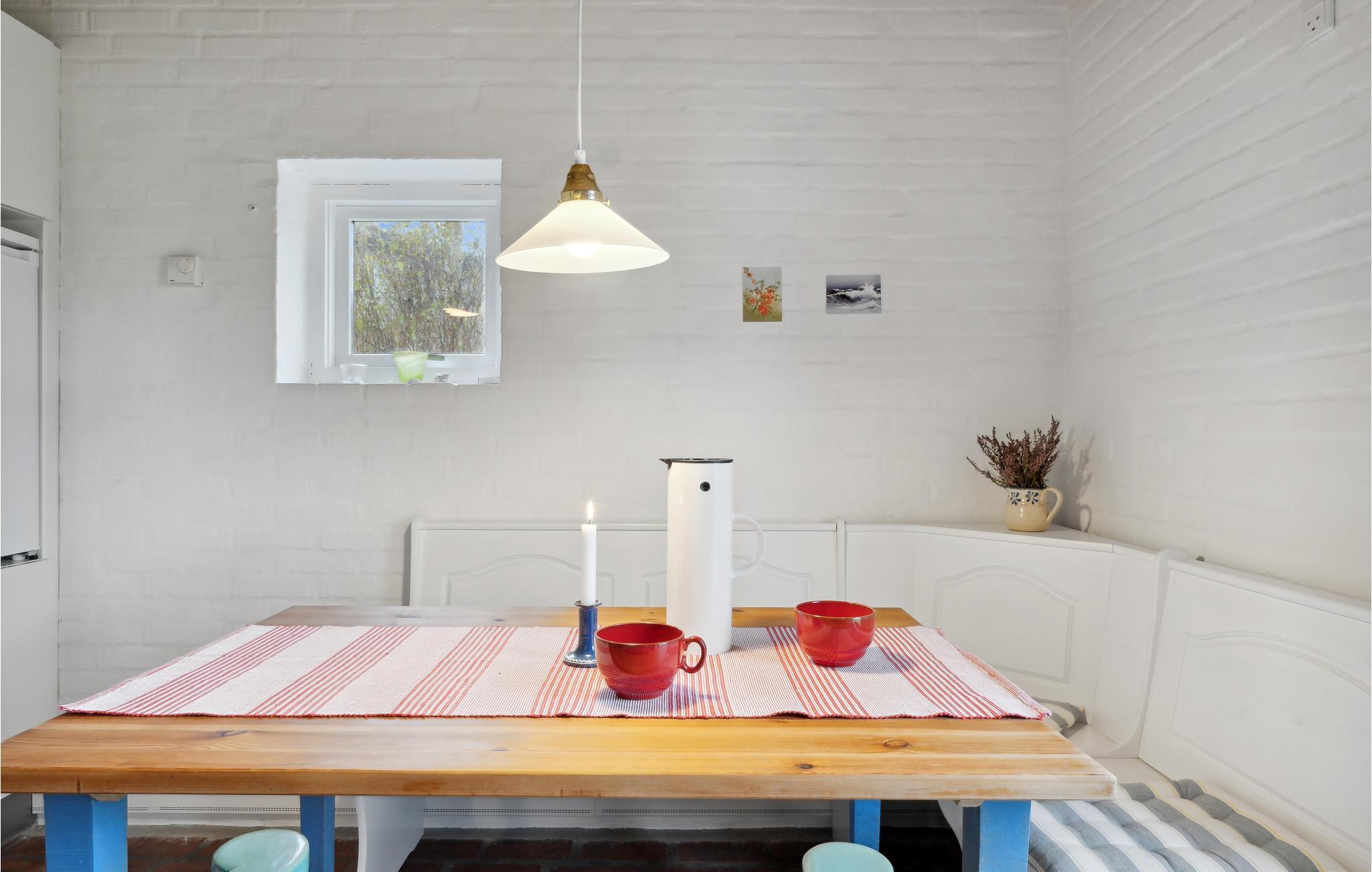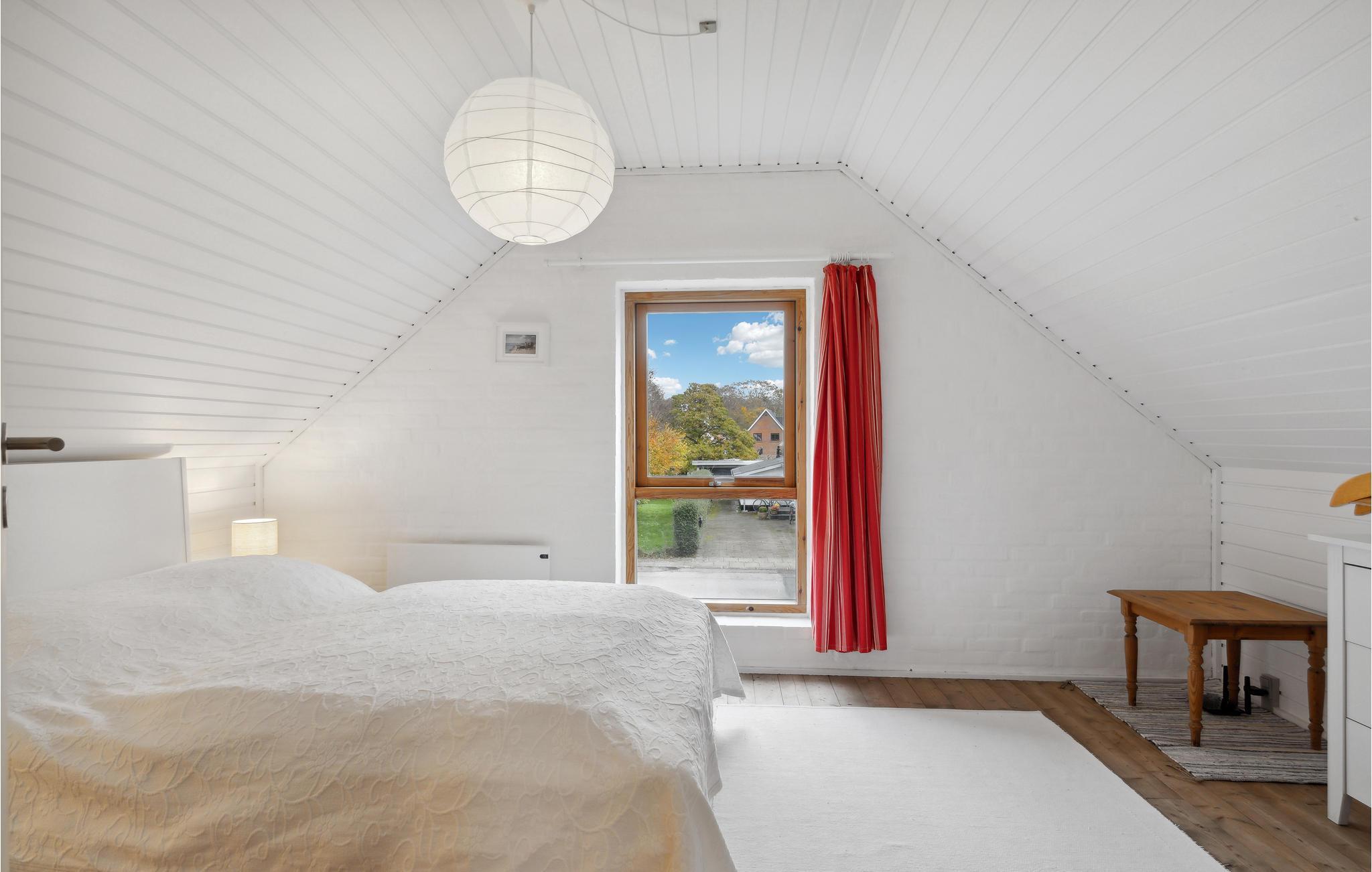 I dette indbydende hus i Jerup er der gjort alt for at sikre, at I kan holde en skøn familieferie. Lyse rum med et flot samspil af mustensgulve, trælofter, pudsede murstensvægge og smagfulde indretningsløsninger gør det nemt at slappe af og lægge den travle hverdag til side. Nyd dagens måltider sammen og afslappende aftener i opholdsstuen, som har en dejlig udsigt til haven. Efter en aktiv dag kan I sludre til sent ud på aftenen, mens flammerne brænder lystigt i brændeovnen. Gå fra køkkenet ud i det fri og nyd en kop kaffe i dagens første solstråler.