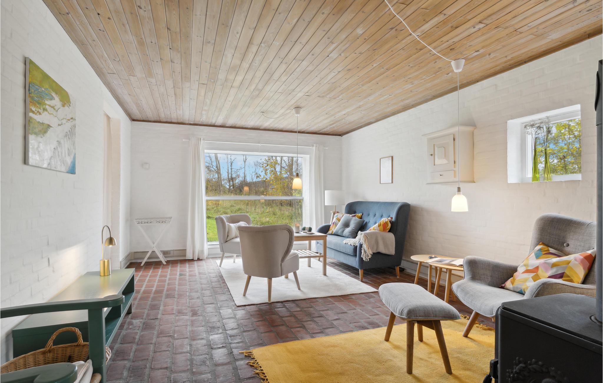 Hyggeligt feriehus i Jerup med naturreservat og brændeovn, ideelt til familieferie tæt på stranden.