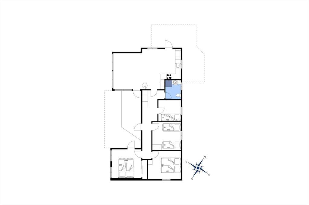 Sommerhuset byder på en lys og indbydende entré, hvorfra der er adgang til husets hjerterum – det åbne køkken-alrum, som er i direkte forbindelse med stuen. Her er der god plads til at samle familien til hyggelige måltider, brætspil og afslapning i sofaarrangementet. Fra stuen er der udgang til en dejlig terrasse, og huset rummer desuden tre gode soveværelser med i alt seks sovepladser.