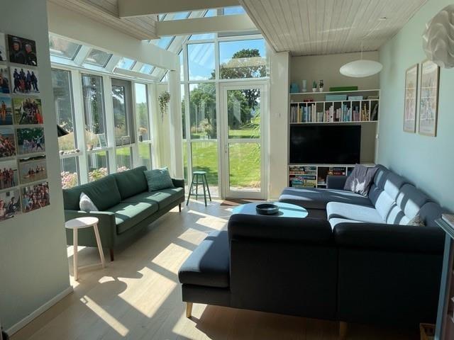 Hyggeligt sommerhus i Juelsminde med plads til 10, tæt på strand og stort haveområde.