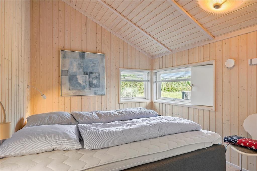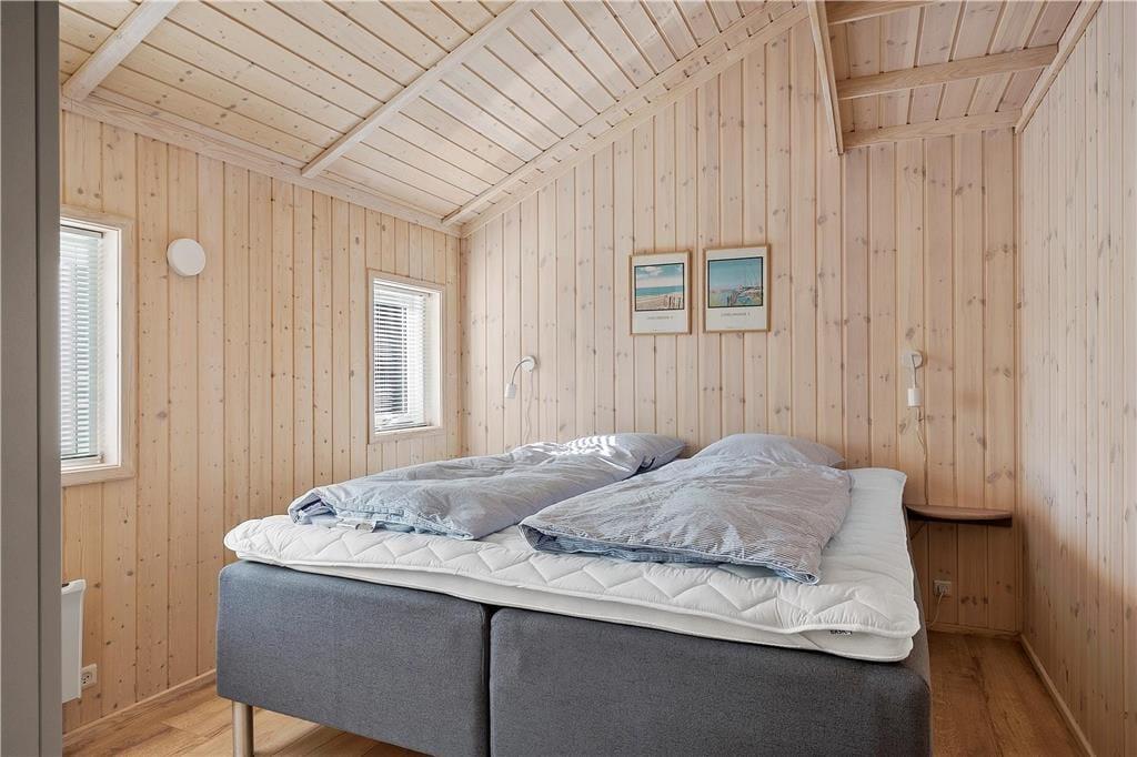 Sommerhusets sengepladser fordeler sig på 3 værelser med henholdsvis 2 dobbeltsenge og 2 enkeltsenge.