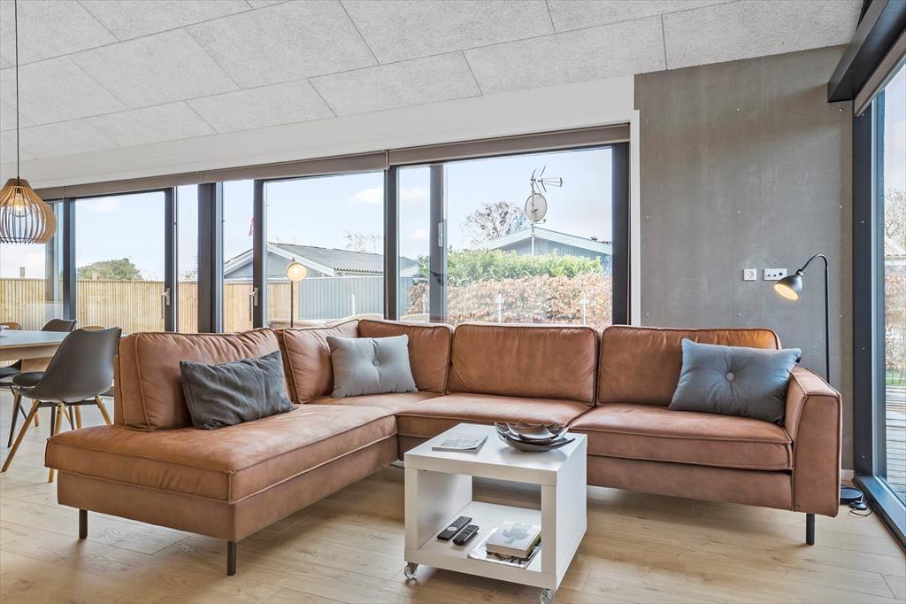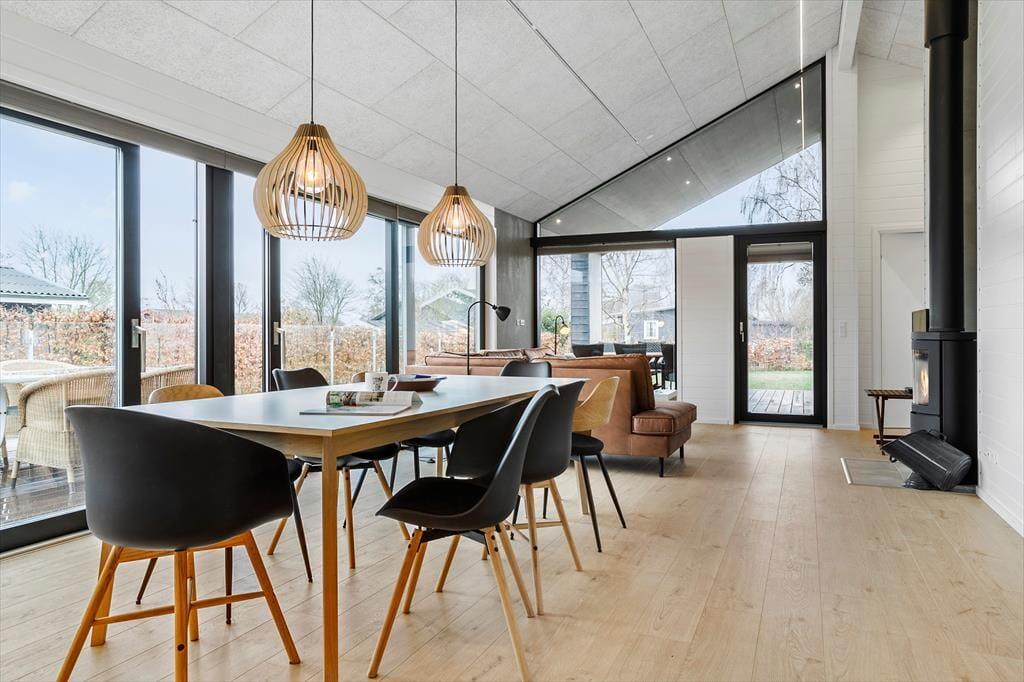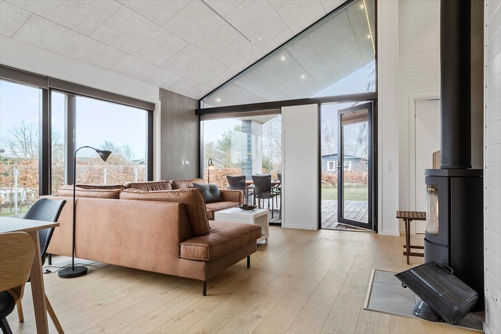 Når du træder ind i sommerhuset, mødes du af lyse rum og en enkel indretning, der giver en afslappet atmosfære. Stuen og køkkenet ligger i åben forbindelse, så du let kan være sammen, mens dagen folder sig ud omkring dig. Her kan du starte morgenen langsomt med kaffe ved spisebordet, finde en blød plads i sofaen med en bog eller lade lyset fra haven strømme ind gennem vinduerne, mens tankerne falder til ro. Huset indbyder til nærvær og gode samtaler, små grin og stille stunder. Her er det let at mærke ferien i din egen rytme.
