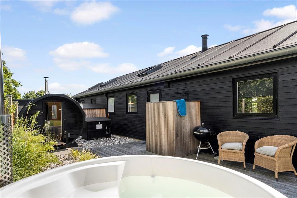 Haven og terrassen bliver hurtigt et naturligt midtpunkt i dine feriedage. Her kan du følge solens vandring, dække op til frokost i det fri eller læne dig tilbage og lytte til sommerens rolige lyde. Måske vælger du en stille stund med kaffe og udsyn til havens grønne omgivelser, eller måske bliver dagen lang og varm med grill, god mad og tid der får lov at strække sig lidt længere end normalt. En tur gennem nærområdet giver dig fine naturoplevelser, hvor du kan mærke den friske luft og den lette brise fra kysten. Her er rum til både afslapning og små øjeblikke af aktivitet, helt uden at det skal planlægges.