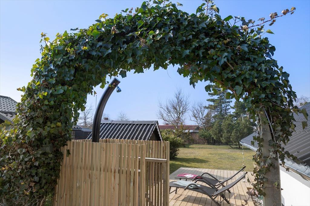 Når I kommer retur fra stranden, kan I nyde et forfriskende udendørs bad ved sommerhuset.