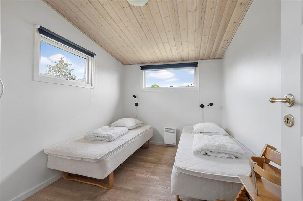 Huset har 3 værelser, hvor det ene har 2 enkeltsenge, så her kan man sove sammen, uden at skulle dele seng. Virkelig hyggeligt på den gode sommerhus måde.
