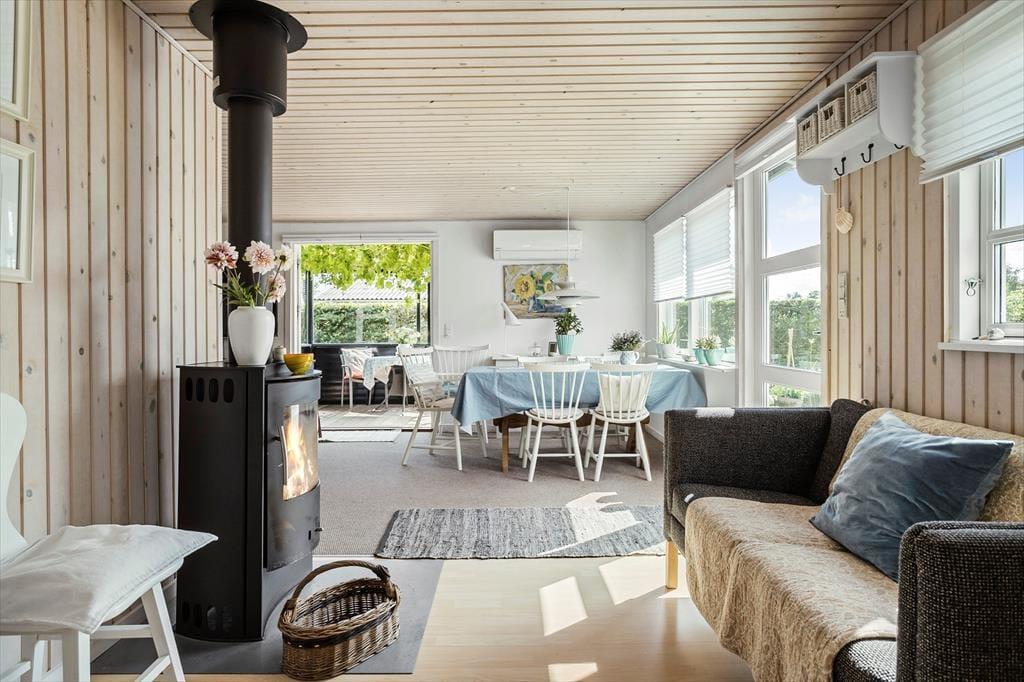 Der er kun 200 m til en rigtig fin badestrand med dejlig sandbund. Så på få minutters gang kan I stå med fødderne i sandet, nyde badeture, slappe af ved vandet eller måske tage gåture i den flotte natur i området. Der er badebro på stranden tæt ved huset.