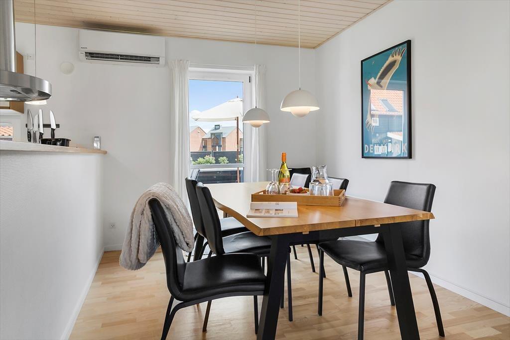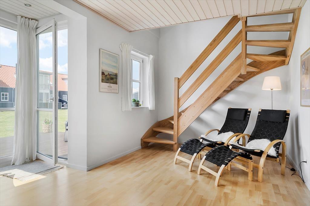 I stueetagen finder du en hyggelig stue med direkte adgang til en åben terrasse, hvor du kan nyde udsigten eller fordybe dig i en god bog. Det åbne køkken er fuldt udstyret og klar til at imødekomme dine kulinariske eventyr. Køkkenets åbne design skaber en behagelig forbindelse mellem madlavning og samvær, så du kan deltage i samtaler med familien eller venner, mens du tilbereder lækker mad.