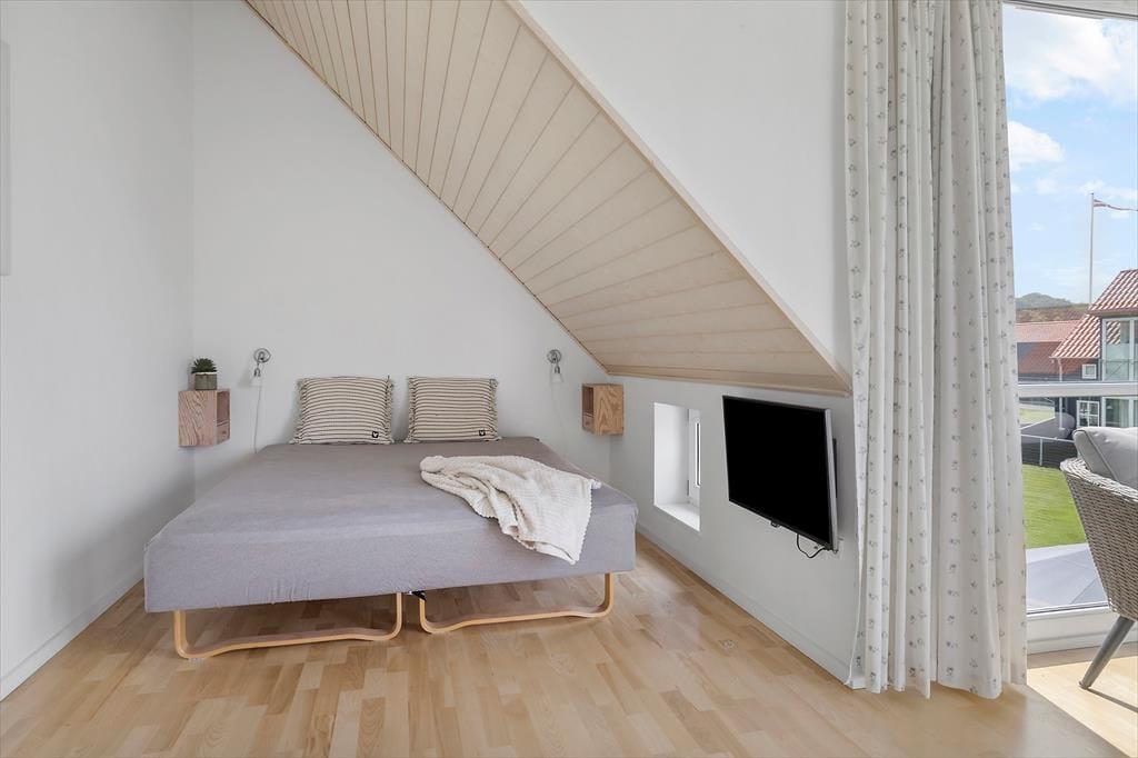 På første sal finder du to velindrettede soveværelser. Det ene soveværelse har en charmerende karnap med havudsigt. Der er også et badeværelse med spa – hop i spabadet, lad skuldrene falde ned, og nyd den afslappende feriestemning.