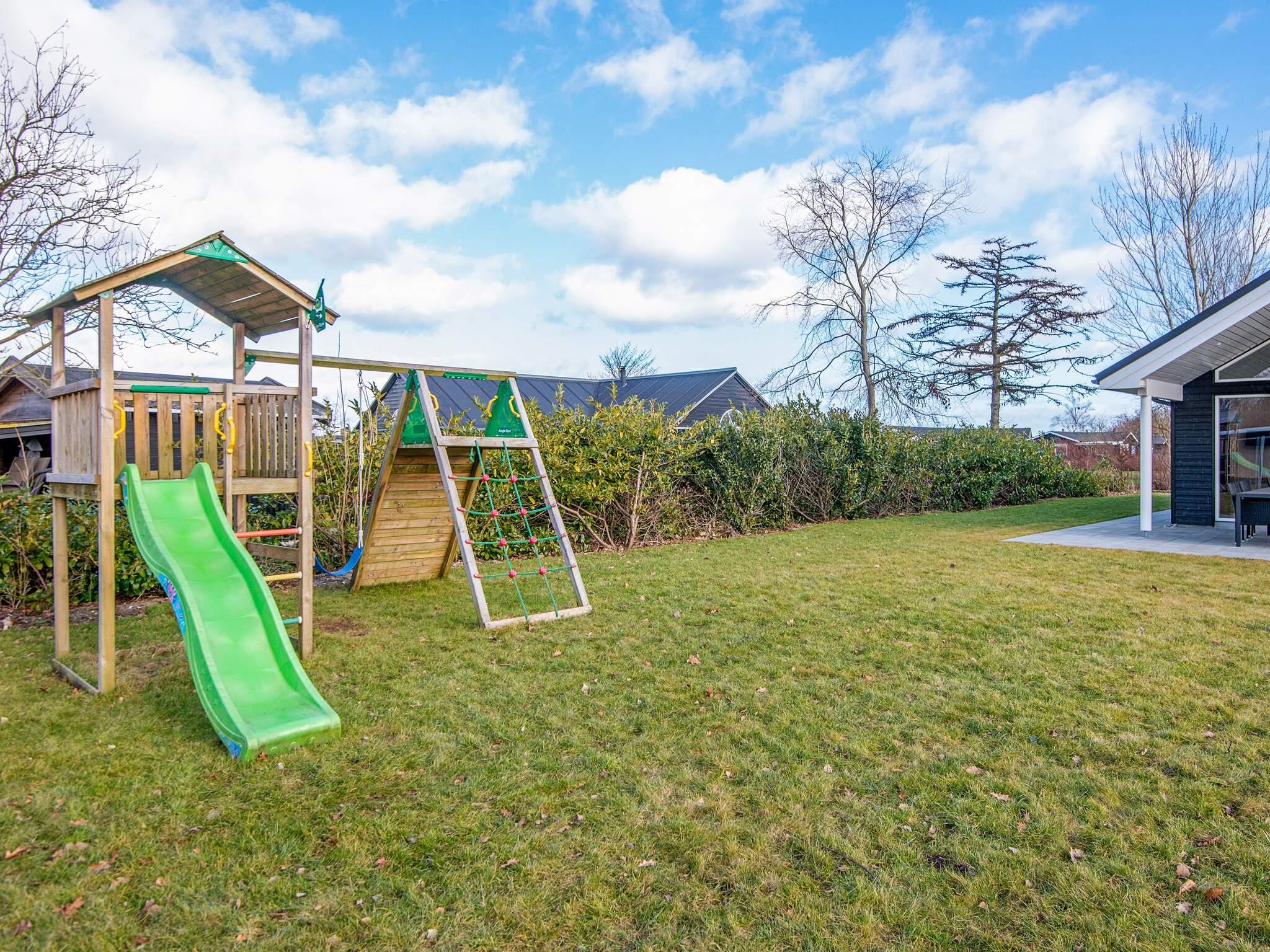 Der er sandkasse og gynger samt trampolin (benyttes på eget ansvar/forsikring) til børnene. På den store terrasse med gårdhave kan I nyde solen og have hyggelige grillaftener.
