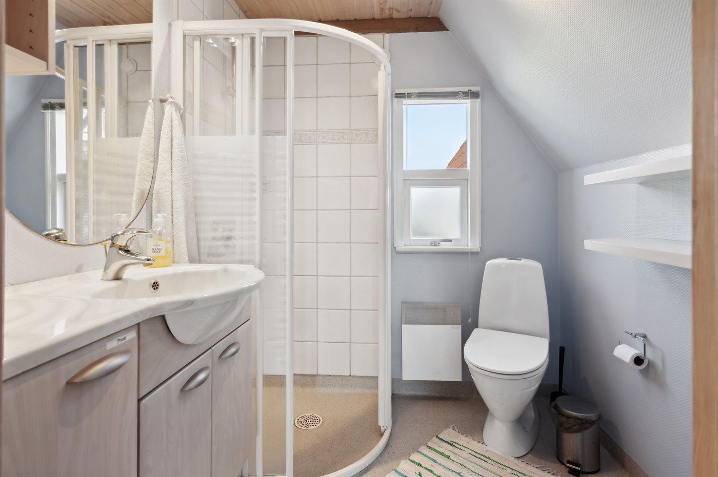 Der er 2 badeværelser med bruseniche og 2 toiletter.