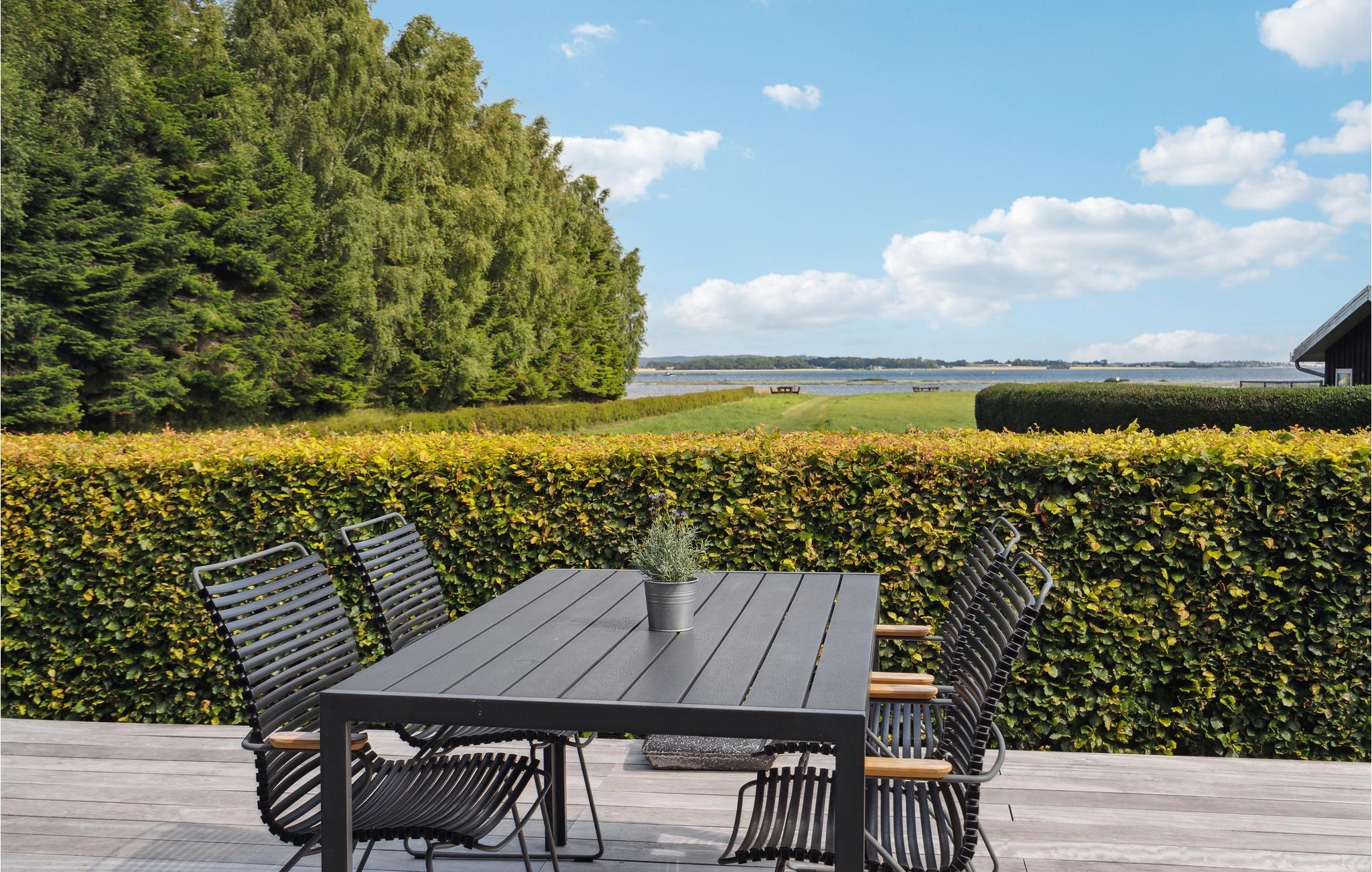 Oplev komfort og natur i dette moderne feriehus med fantastisk fjordudsigt tæt på stranden i Juelsminde.