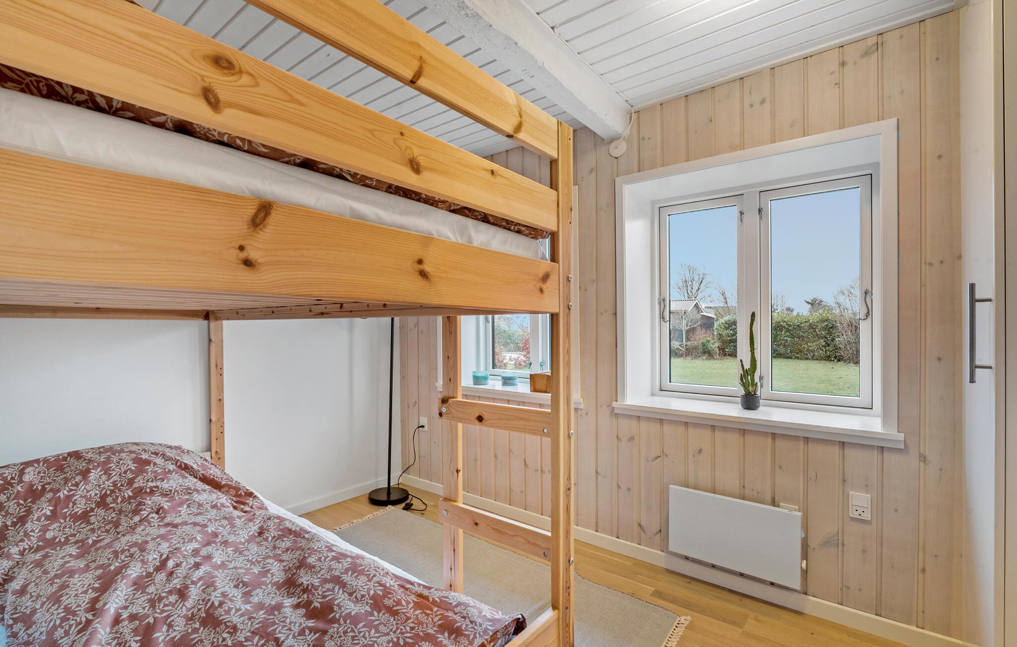 Dette velindrettede feriehus i Juelsminde kombinerer original charme med moderne komfort. Fordelt på to etager tilbyder det jer lyse og indbydende rum, der skaber en varm atmosfære takket være trælofter og vægge. Den hyggelige opholdsstue med brændeovn lægger op til afslappende timer, mens det veludstyrede køkken og spiseplads giver plads til fælles måltider.