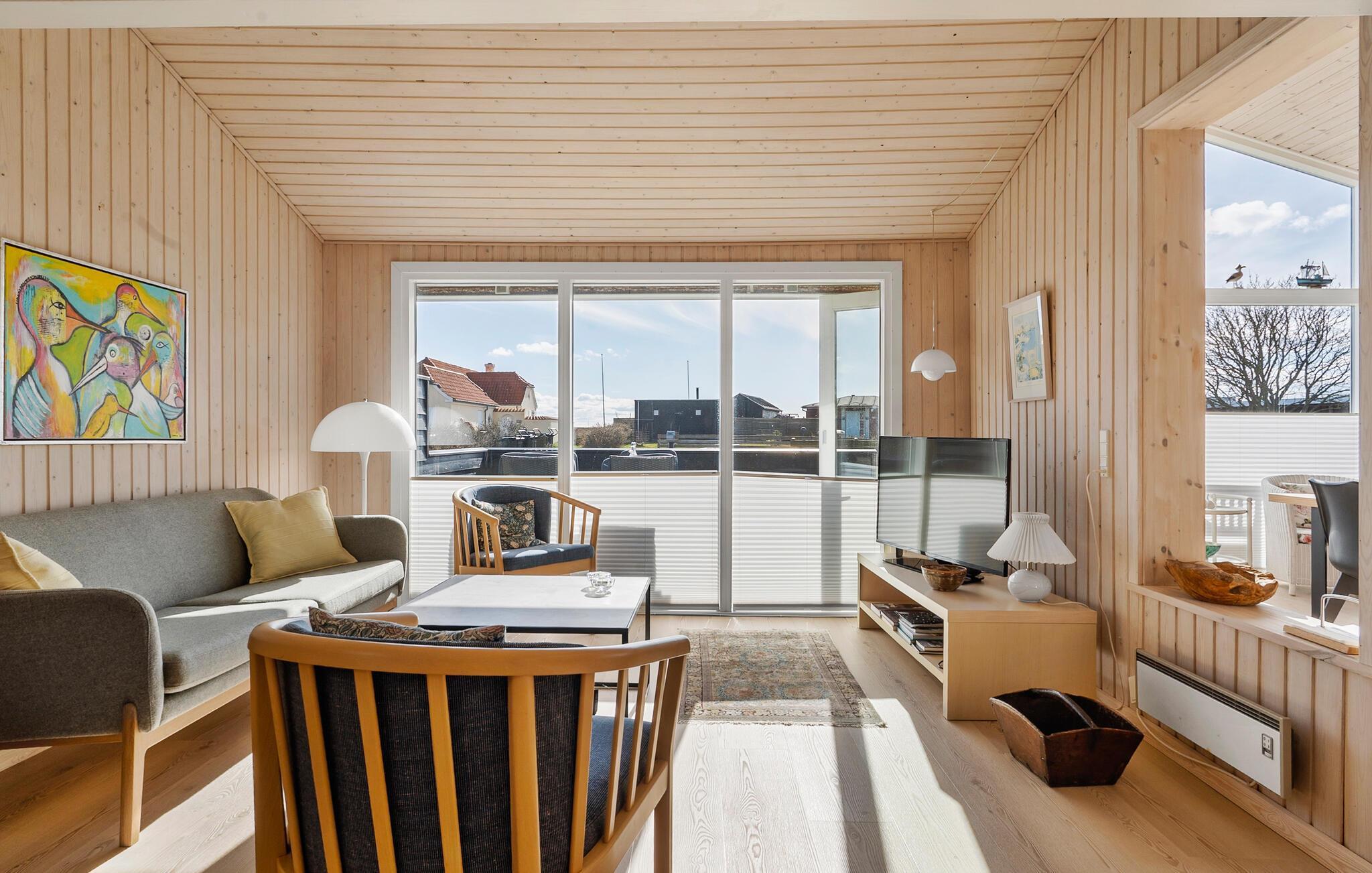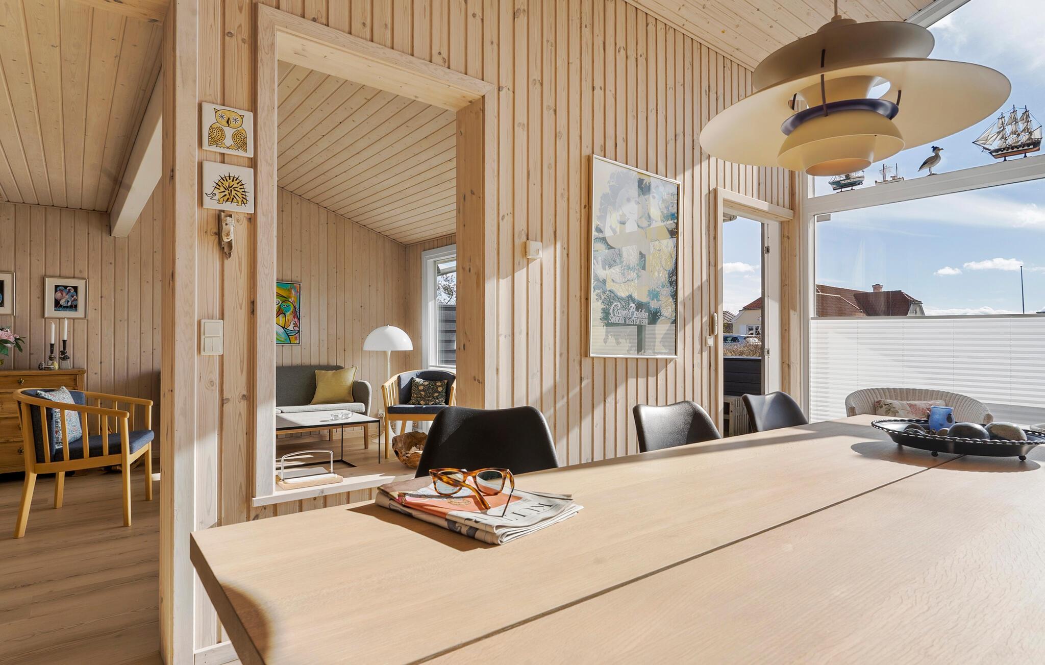 Nyd nogle afslappende dage i jeres sommerhus i Juelsminde, lige på toppen af ??Bjørnsknude. Oplev ægte skandinavisk hygge i jeres hjem. Opholdsstuen med højt til loftet, store vinduespartier og masser af træ byder på en hyggelig opholdsstemning. Slå jer ned i den komfortable sofa og slap af med en god bog eller en hyggelig filmaften. Den åbne spiseplads med sine moderne møbler lægger op til hyggestunder, mens det stilrene køkken, der også har en træstil, inspirerer til at lave mad sammen.