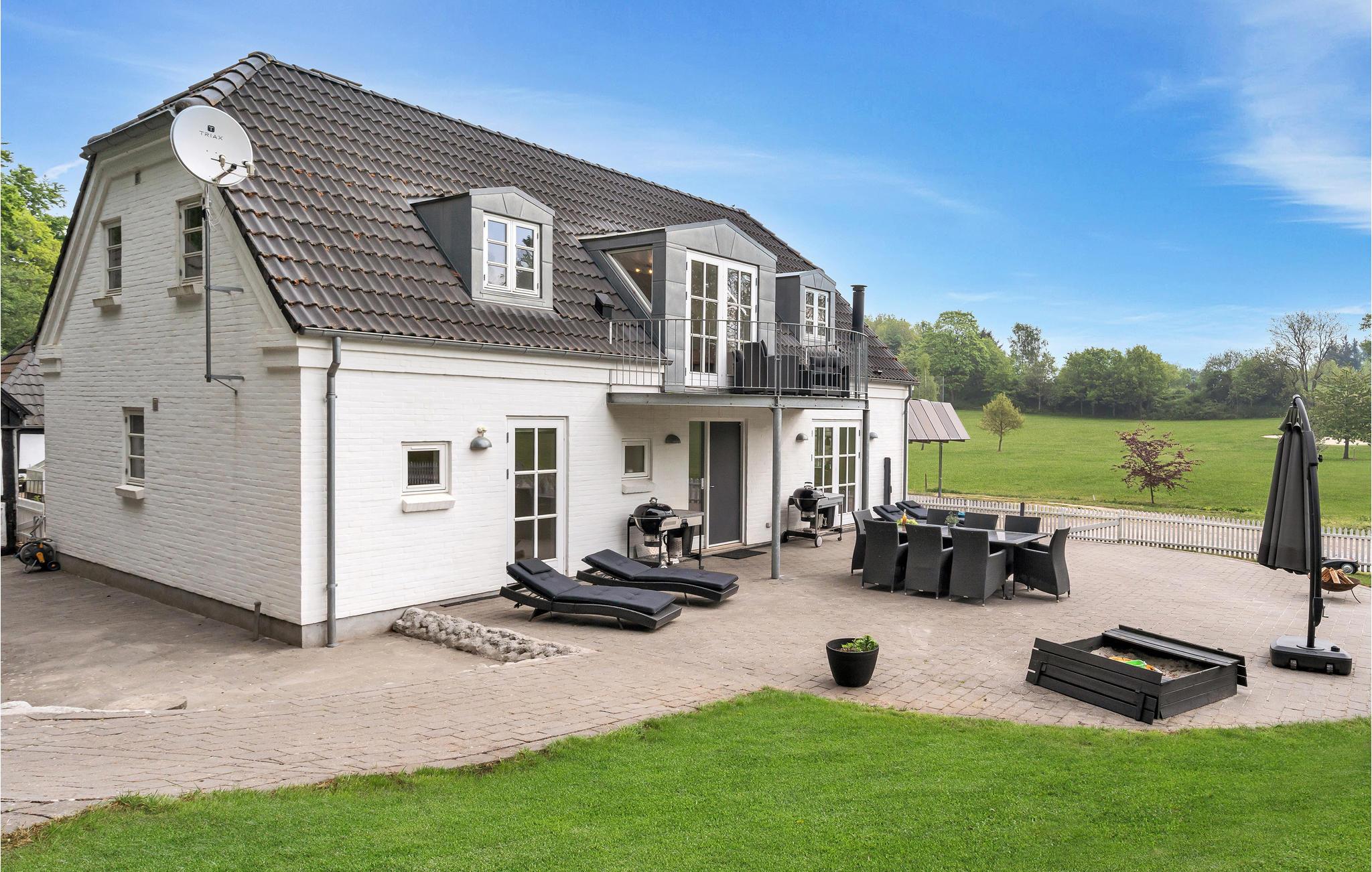Slap af på den store terrasse, mens børnene leger på legetårnet med rutsjebane eller på trampolinen. Brug liggestolene, eller nyd jeres måltider under åben himmel ved det lange havebord. Vildmarksbadet og den eksklusive saunahytte står til rådighed hele året og gør jeres ophold særligt afslappende uanset årstid. Fra altanen har I en dejlig udsigt over den velplejede grund og den tilstødende golfbane.
