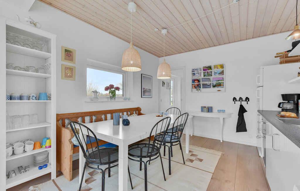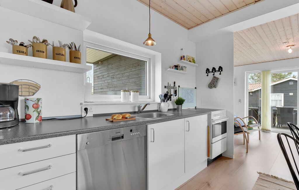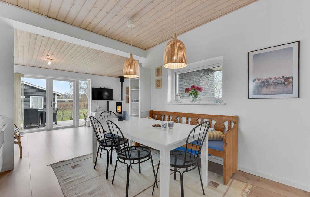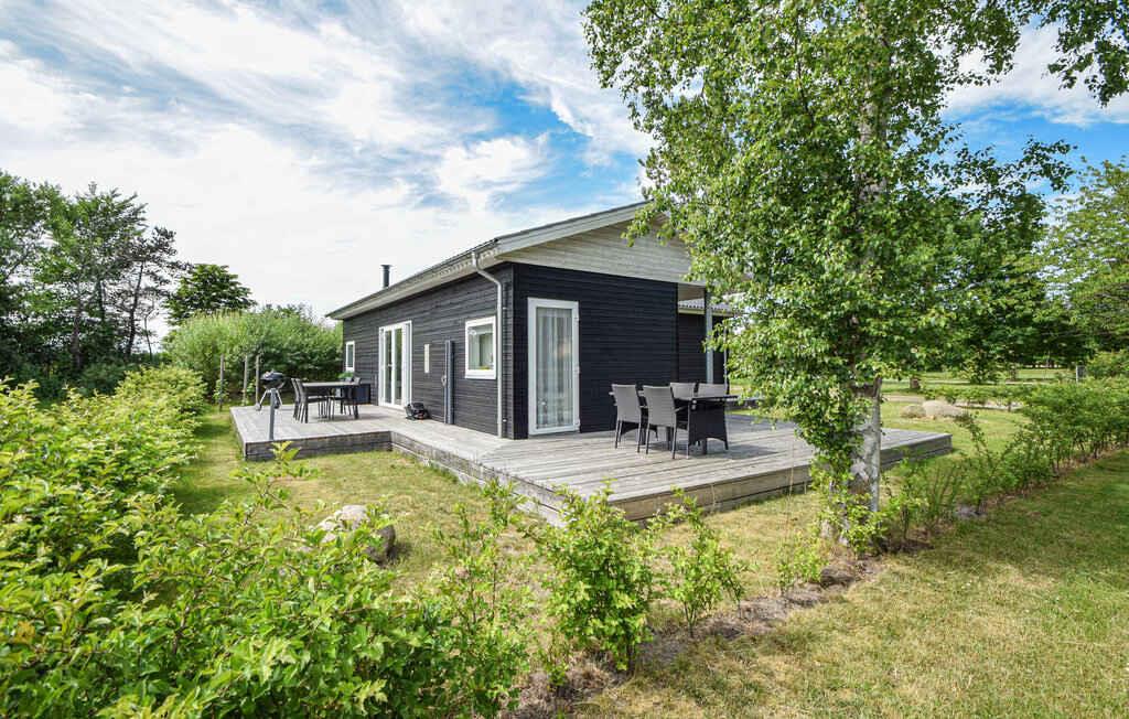 Lyst og moderne sommerhus tæt på badestrand med stor terrasse og plads til 6 personer.