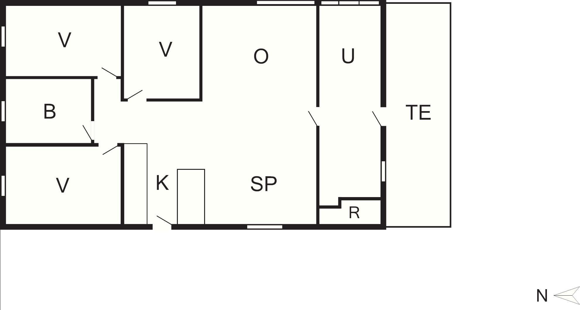 3 Soveværelser: (1DS)+(2S)+(2K), barneseng