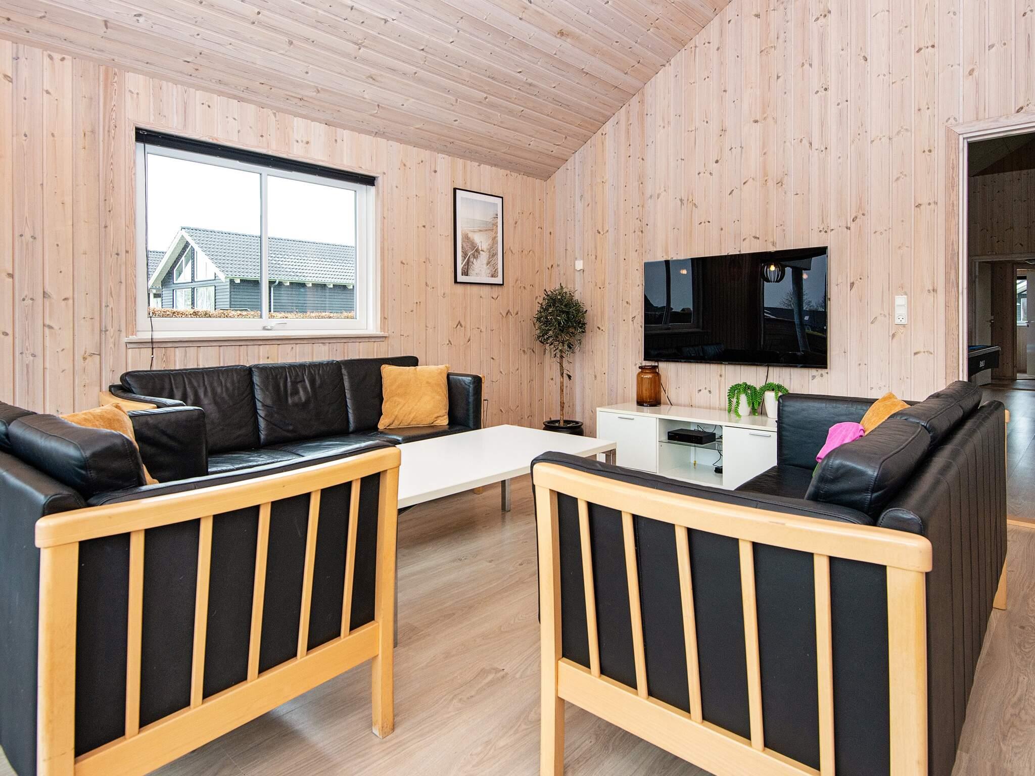 Spise/opholdsrum er smagfuldt indrettet med stereoanlæg med cd-afspiller, fladskærms-tv, højstol til de mindste, sofaafdeling og brændeovn.