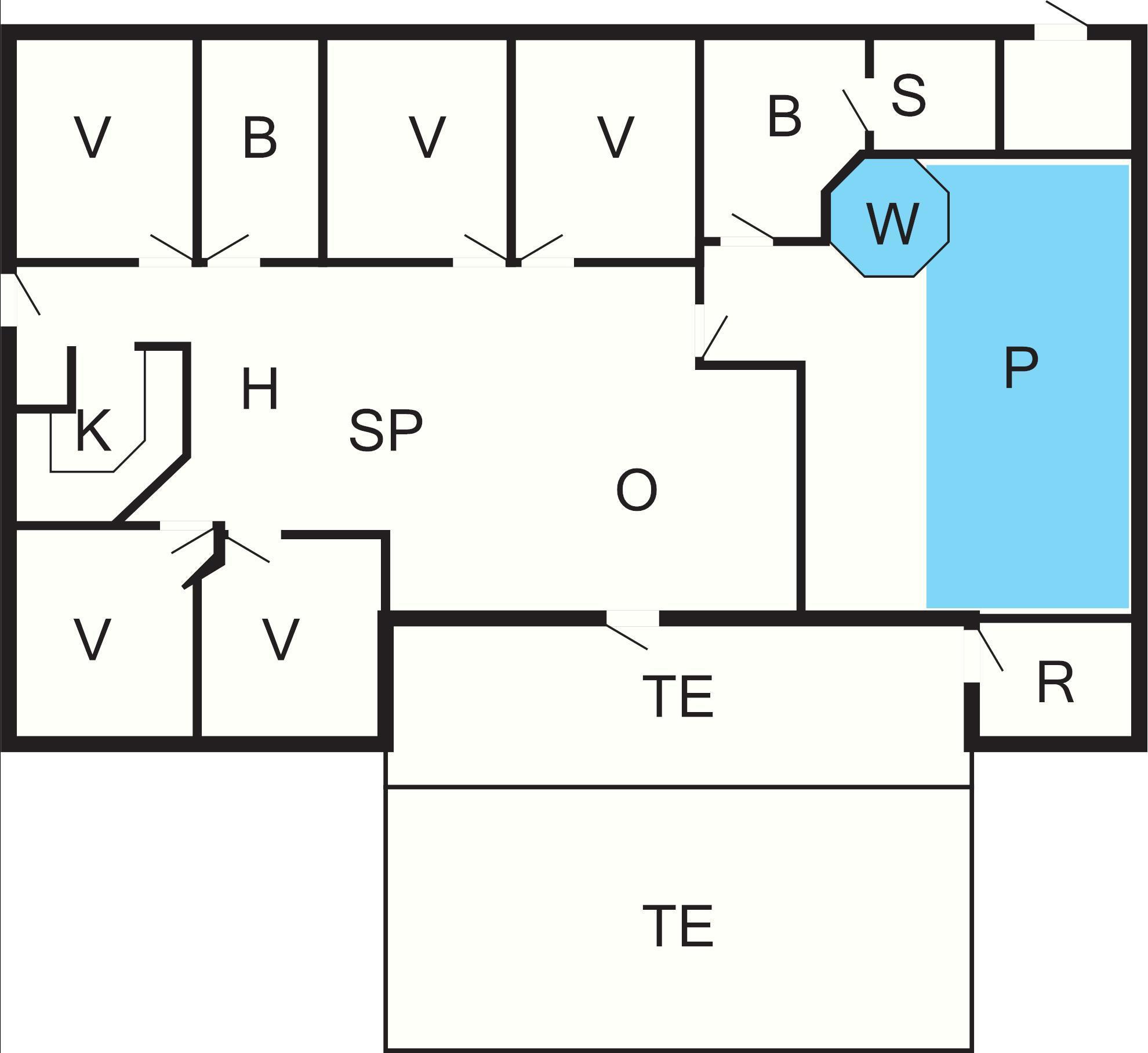 Ca. 200 m fra børnevenlig strand ligger dette sommerhus med swimmingpool. Huset er delvist moderniseret i 2007. Poolafdelingen er med 20 m2 swimmingpool, der er 1.35 m dybde, stort 6-personers standvandsspabad, sauna og gulvvarme. Et rum til stor fornøjelse for hele familien. Huset har god plads til to familier med to badeværelser, hvoraf det ene ligger i direkte tilknytning til poolrummet. Huset er udstyret med bl.a. opvaskemaskine, vaskemaskine, tørretumbler, mikroovn, komfur og køle/frys. Der er også en transportabel kogeplade som kan bruges på terrassen. Den store, kombinerede spise- og opholdsstue er udstyret med to fjernsyn. Det ene TV ved spisebordet har en Playstation 4 (spil skal selv medbringes). TV’et ved sofaen er et Smart-tv, som er tilsluttet med parabol og kabel-tv, dvd-afspiller. Desuden er der også stereoanlæg med cd-afspiller. Der er trådløs gratis internet 15/15Mb. I stuen er der brændeovn er der brændeovn til kølligere dage, der skaber varme og hygge. Fra stuen er der udgang til terrassen, hvor I kan opholde Jerr hele dagen og aftenen. Terrassen er delvis overdækket af et gennemsigtigt tag, der lader lyset passere. Der er fem soverum med dobbeltseng (I alt 10 enkeltsenge 90x200 cm som er stillet sammen, men som kan rykkes fra hinanden, hvis dette måtte ønskes) samt to sovepladser på husets hems.