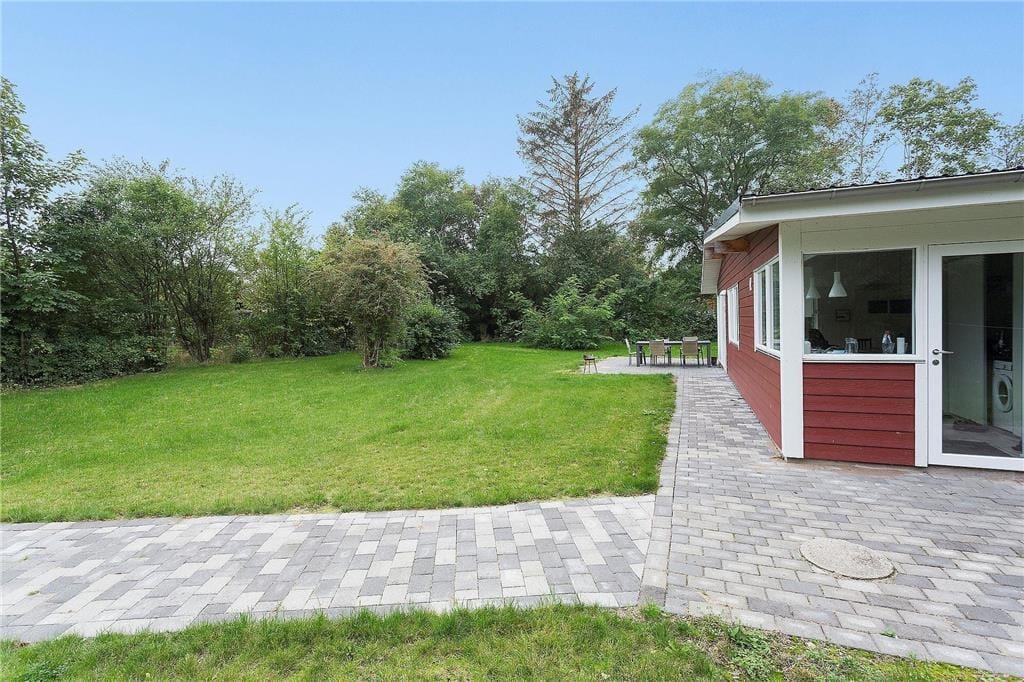 Huset har en 1220 m2 stor grund med en fliseterrasse som går rundt om huset. Ved feriehuset er der havemøbler og grill.
