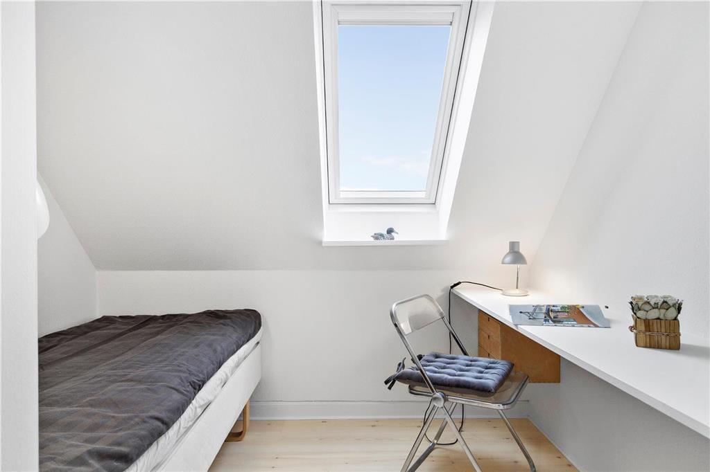 1 værelse med skriveplads og god enkelt seng. Skydedør indtil værelset.