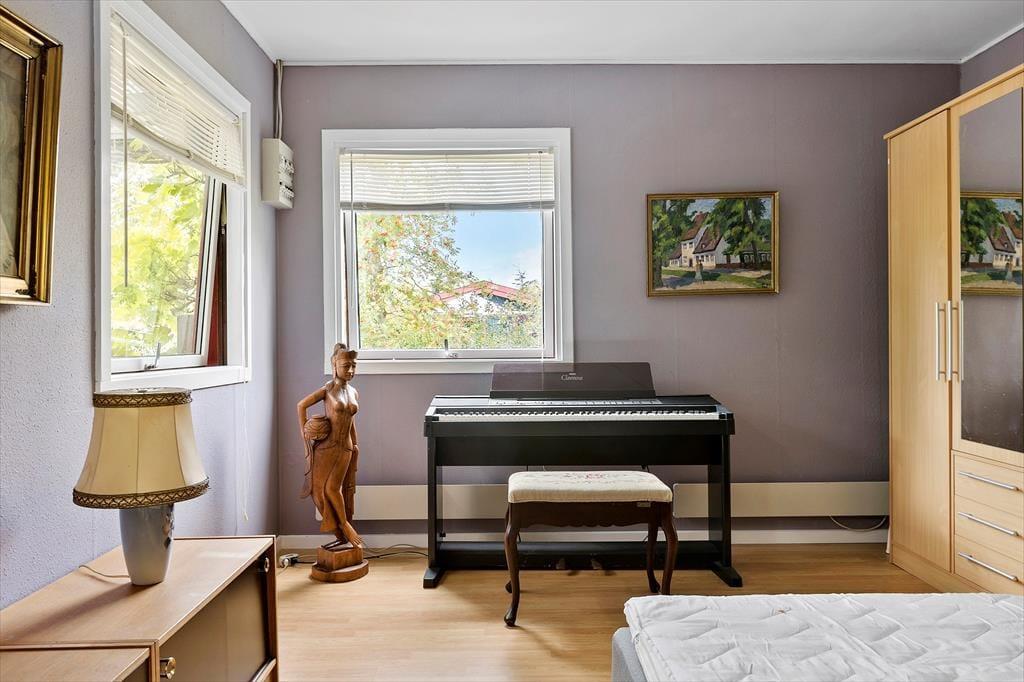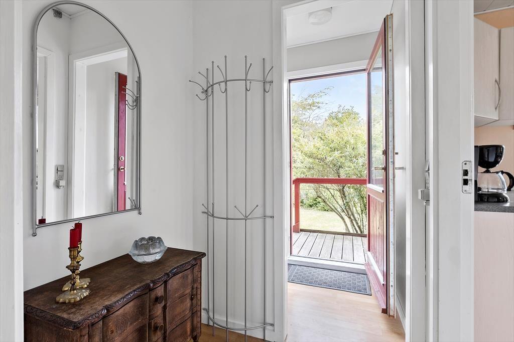I køkkenet er der komfur med kogeplader og ovn, køleskab og kaffemaskine, samt alt