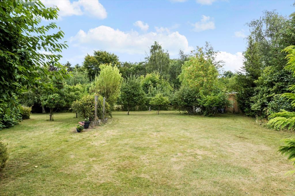Rigtig dejlig have med god plads til leg og hygge – fin beplantning – ekstra terrasse med havemøbler.