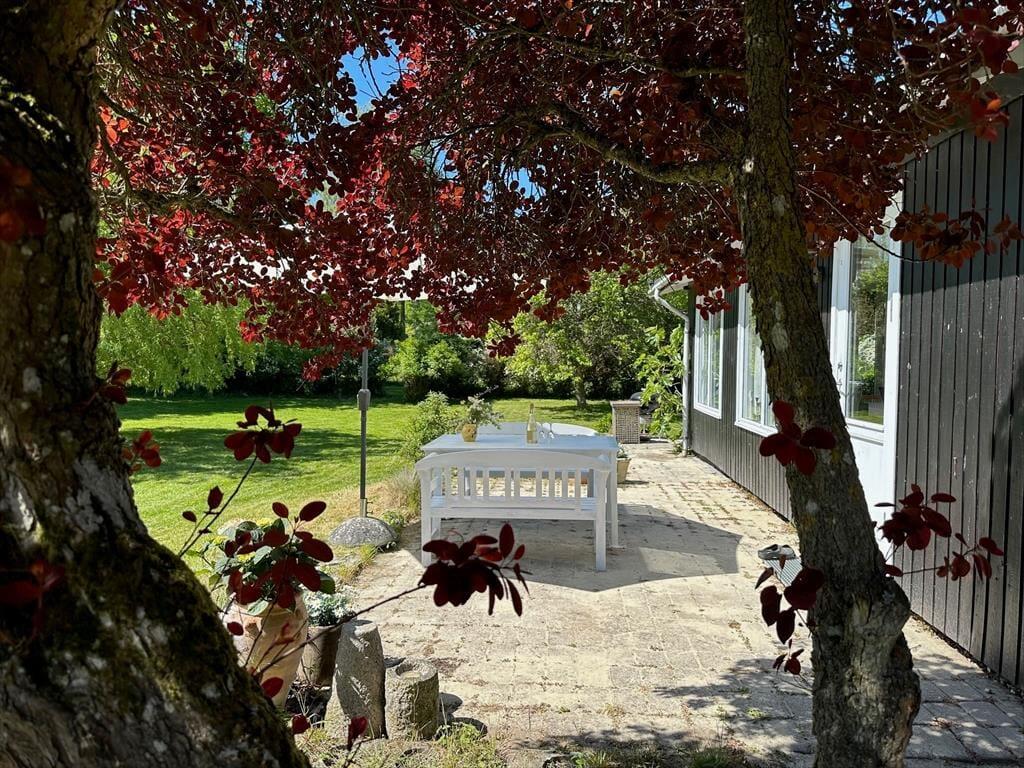Sommerhuset er omkranset af en dejlig stor have med træer og har flere hyggelige terrasser. Her kan I nyde de lune dage og aftener. I haven kan I være ugenert og nyde at have tid til at være sammen om dagens første måltid. Her finder I både plads til hygge, afslapning og natureventyr, og hvis I er heldige, vil I opleve rådyr komme forbi i haven. Fra huset har I kun 130 meter til lille strand med adgang via ny trappe.