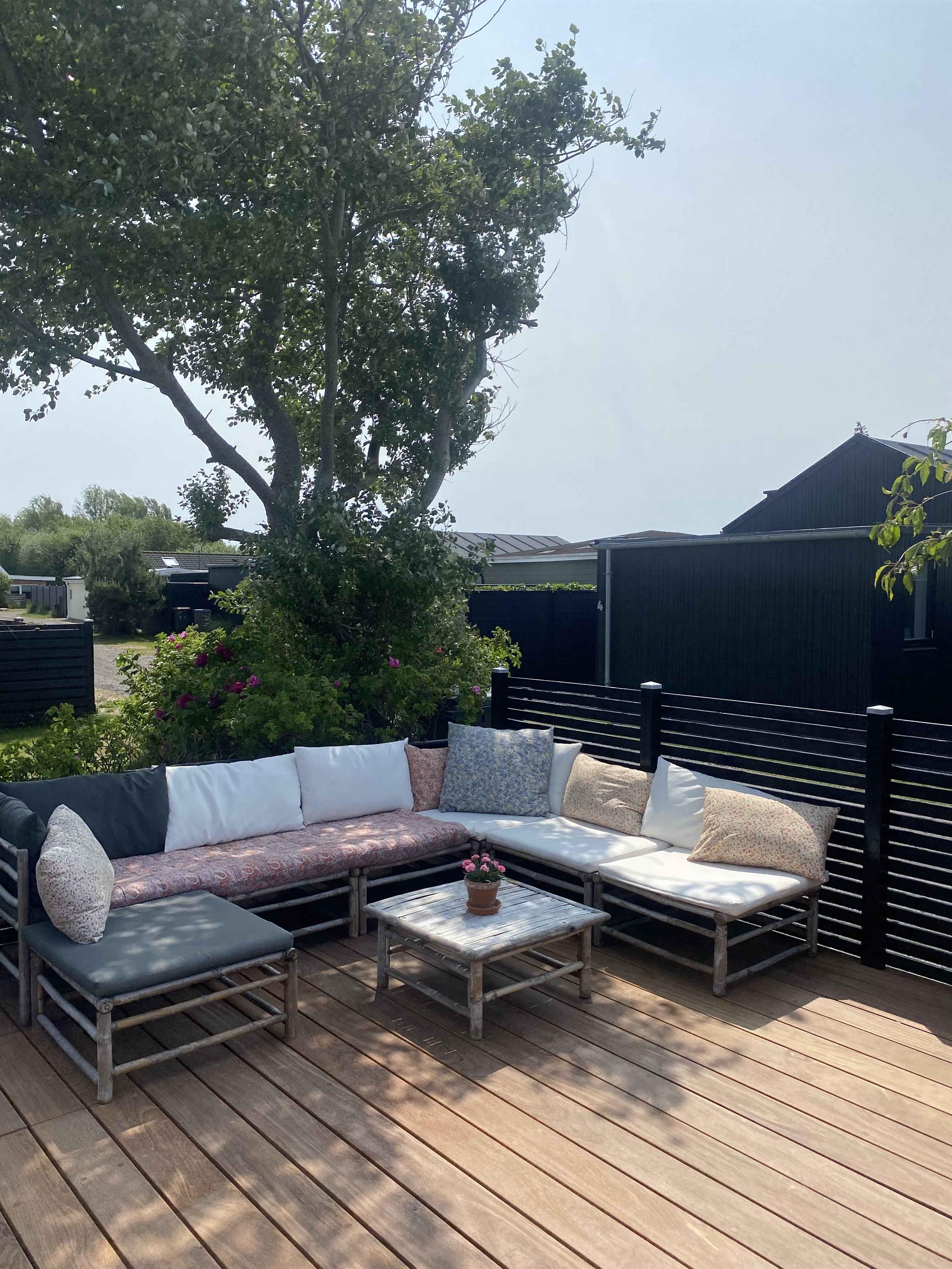 Lækkert sommerhus tæt på Enøs børnevenlige strand med havudsigt og hyggelig terrasse.