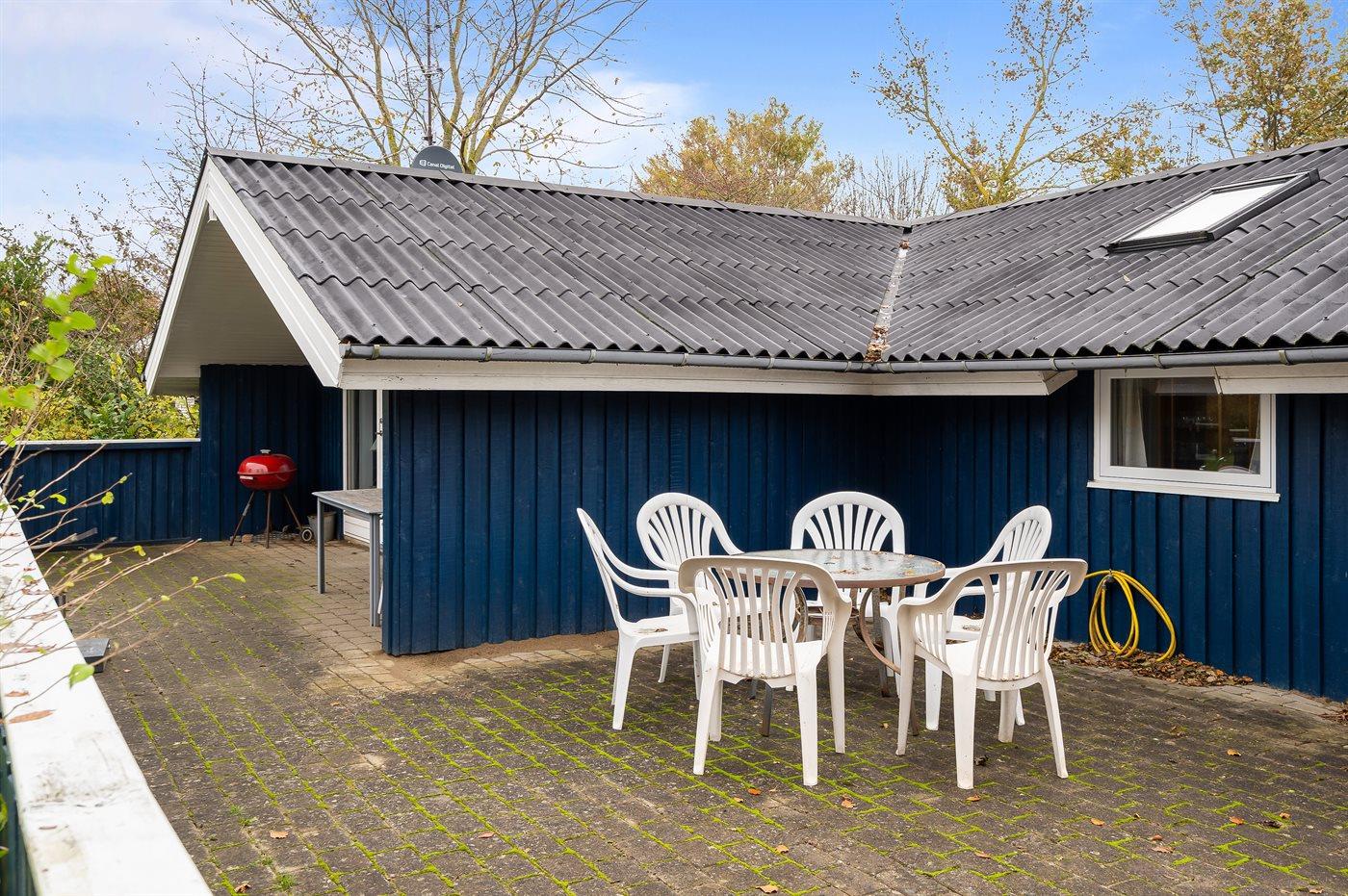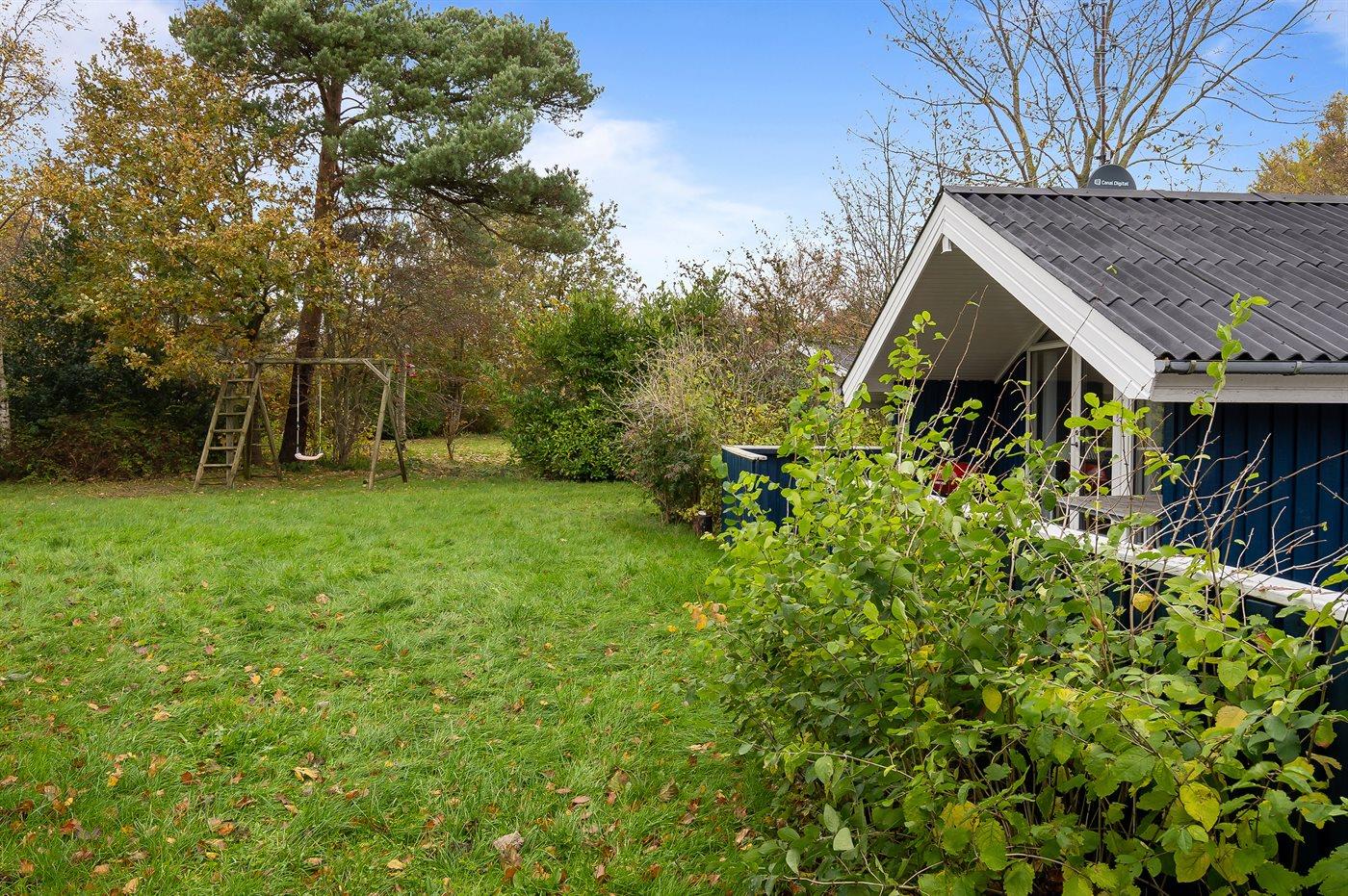 Ferieboligen er beliggende på en 800 m² stor havegrund. Der er 150 m til havet. Nærmeste forretning er beliggende i en afstand af 8000 m. Til ferieboligen hører åbent, til dels overdækket og lukket terrasseareal. Grill til rådighed. Parkering ved ferieboligen.