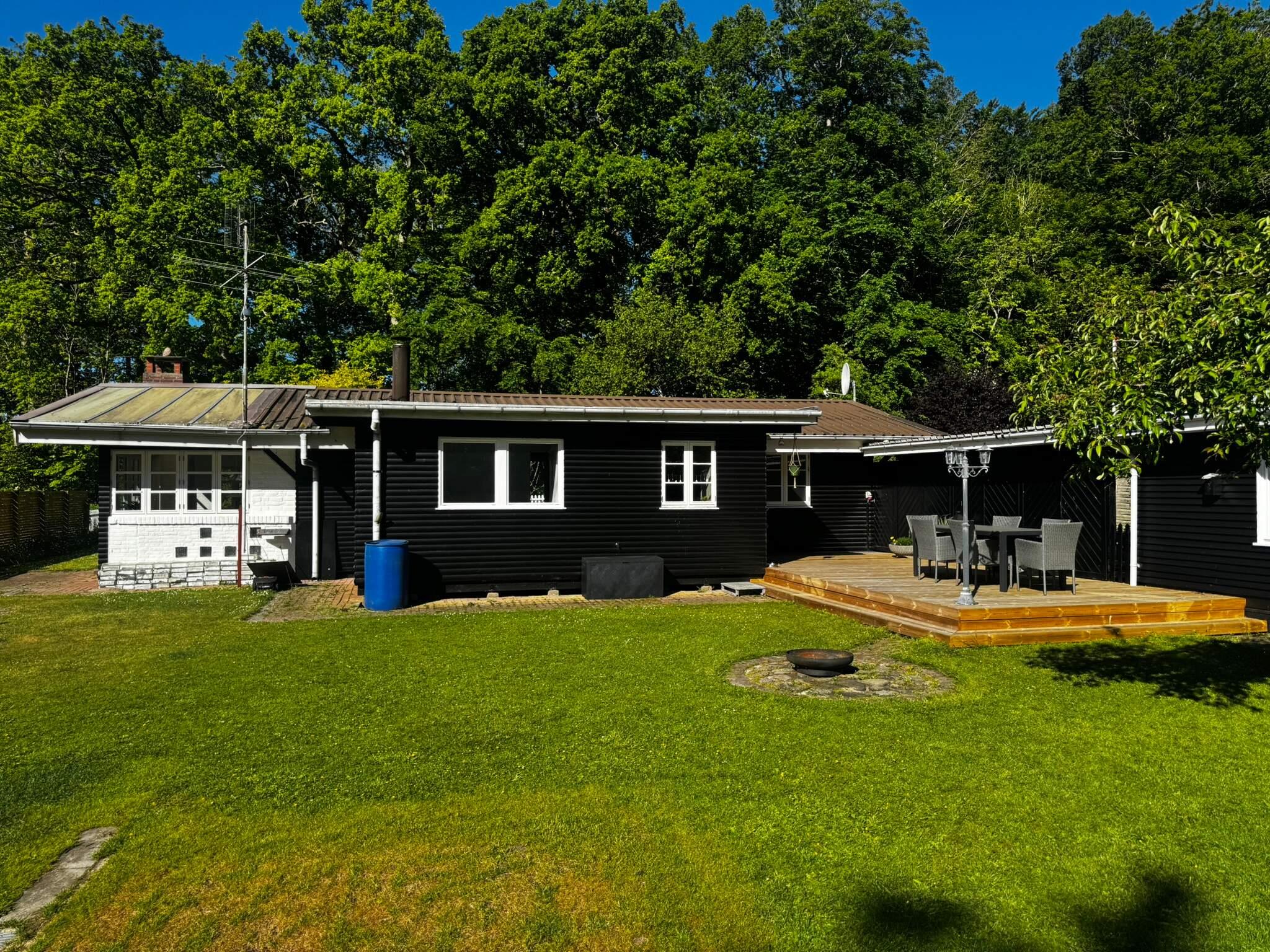 Udenfor er haven helt lukket, hvilket gør den sikker for børn og kæledyr. Flere terrasser tilbyder masser af plads til at nyde udendørs, med en stor overdækket terrasse perfekt til afslappende måltider eller stille stunder i den friske luft. Ejendommen er ideel for familier, der nyder at tilbringe tid sammen i komfort, mens de er omgivet af natur.