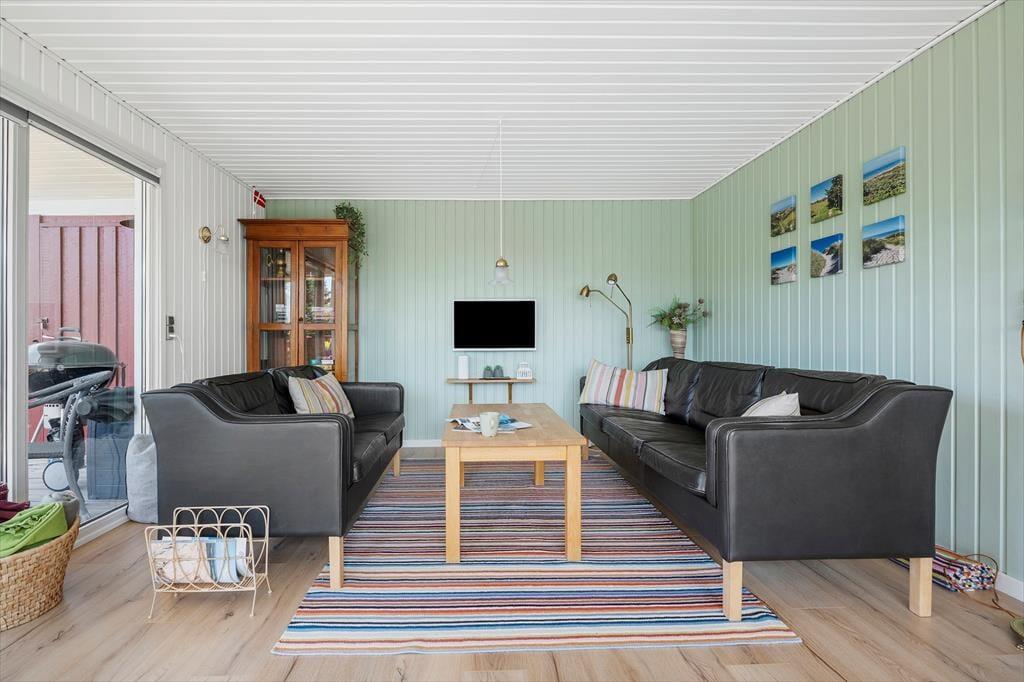 Tre dejlige udsigtsterrasser ligger rundt om sommerhuset, så I har mulighed for at slikke sol i de smukkeste omgivelser lige fra morgenstunden og til solnedgang. Den ene terrasse er vestvendt og delvist overdækket, og den er dermed et oplagt valg om aftenen: Her kan I få glæde af dagens sidste sol og bagefter blive siddende uden at skulle forholde jer til, om duggen falder. Der er både udekøkken og kulgrill til rådighed, hvis I vil lave mad i det fri, og skal der spilles bold eller havespil, har I en naturgrund på hele 4275 m2 at boltre jer på.
