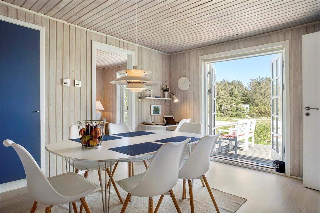 Dette sommerhus er både velholdt og godt udstyret. Fra første skridt ind i huset mærker man, at udlejerne har god sans for kvalitet og indretning. Her er en rigtig hyggelig stemning, bl.a. skabt af de stilfulde og pæne møbler, det dejlige nordjyske lys og den flotte brændeovn i opholdsrummet. Huset består af tre værelser, et badeværelse med bruser, et gæstetoilet, sammenhængende køkken og spisestue og separat opholdsstue med brændeovnen og et stort vinduesparti. Alt i alt et rigtigt familie hus, hvor man kan slappe af og nyde chancen for lidt kvalitetstid. Sommerhuset har gode hårde hvidevarer, som letter det uundgåelige huslige arbejde en del. Virkelig gode og velfungerende faciliteter til den næste ferie i det nordjyske.