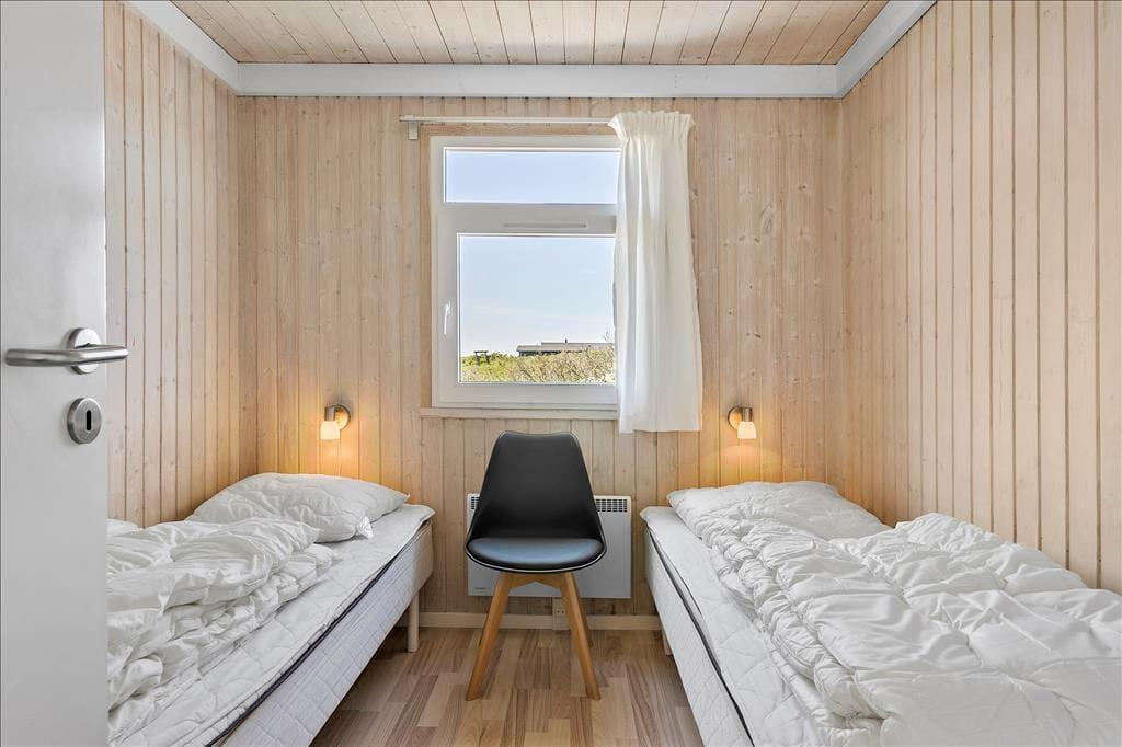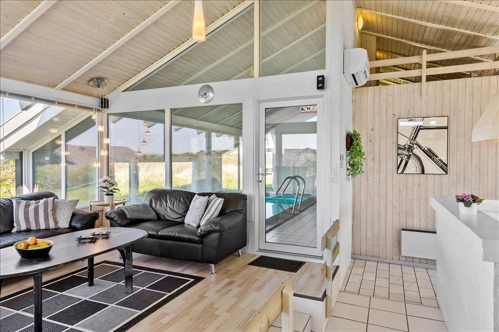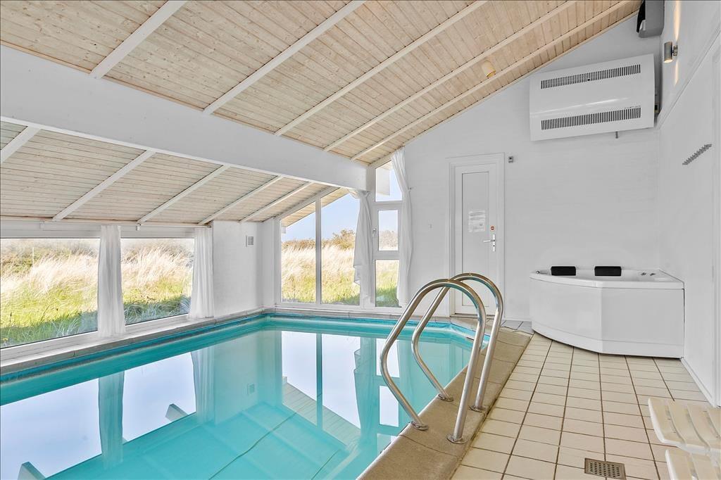 Sommerhuset er skønt beliggende. I sommerhusets centrale rum finder man et dejligt køkkenalrum, hvorfra man kan træde op i den hyggelige stue med kig til poolrummet. Sommerhusets 4 rummelige værelser med gode senge og den store hems på 21 m2 med madrasser og udsigt over Vesterhavet sikrer, at hele familien sover trygt og godt; huset er således med de dejlige faciliteter et ideelt valg for både par og familier.