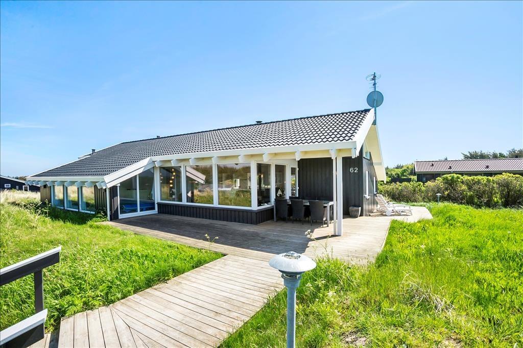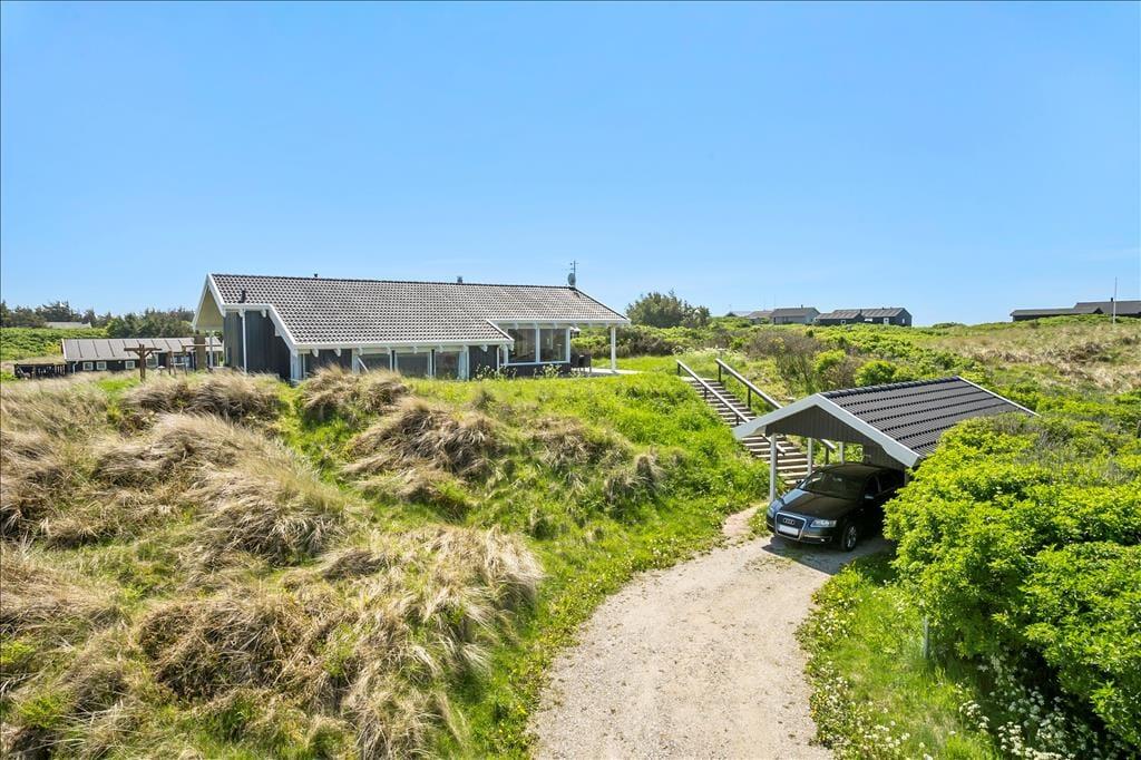 Sommerhuset udmærker sig især med sin placering: højt beliggende i et naturskønt område, hvor man fra de skønne omkransende, nye og store terrasser kan nyde et flot kig til havet. Der er naturligvis gynger og sandkasse til de yngste gæster, og med de skønne havemøbler kan hele familien nyde den friske nordjyske luft og lyden af Vesterhavets betagende susen.