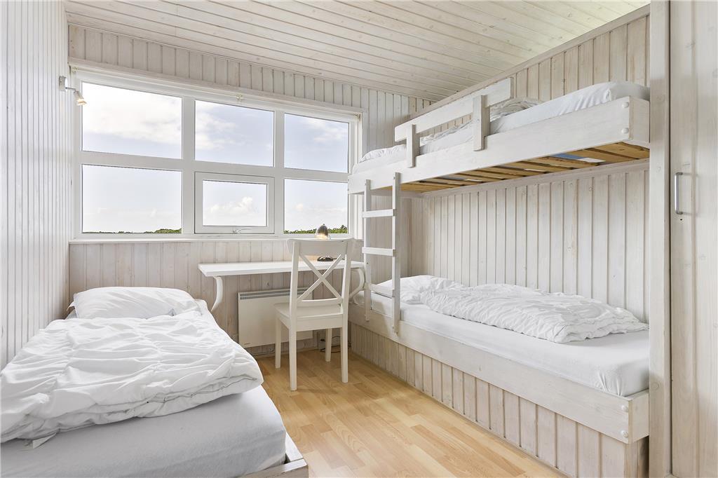 Sommerhuset er indrettet med et dejligt stort og veludstyret køkken-alrum, hvorfra man har et fint overblik over både spisestue og sofaområde. Fra husets centrum er der nem adgang til de 4 soveværelser. Over den ene soveafdeling ligger en stor hems, som man har adgang til via en stige og som fungerer fint som legeplads til de lidt større børn. Ydermere er her to badeværelser, hvoraf det ene er placeret mod vest i forbindelse med poolområdet. Husets pool og en del af stuen bliver opvarmet via oliefyret, og da huset også råder over brændeovn er her tale om et meget energivenligt sommerhus.