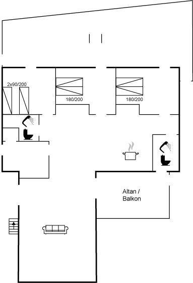 Der er i alt 3 soveværelser. Sovepladserne fordeler sig på: 4 sovepladser i dobbeltsenge. 2 sovepladser i enkeltsenge. 2 sovepladser i sovesofa (dobbelt). Derudover er der 1 stk. barneseng.