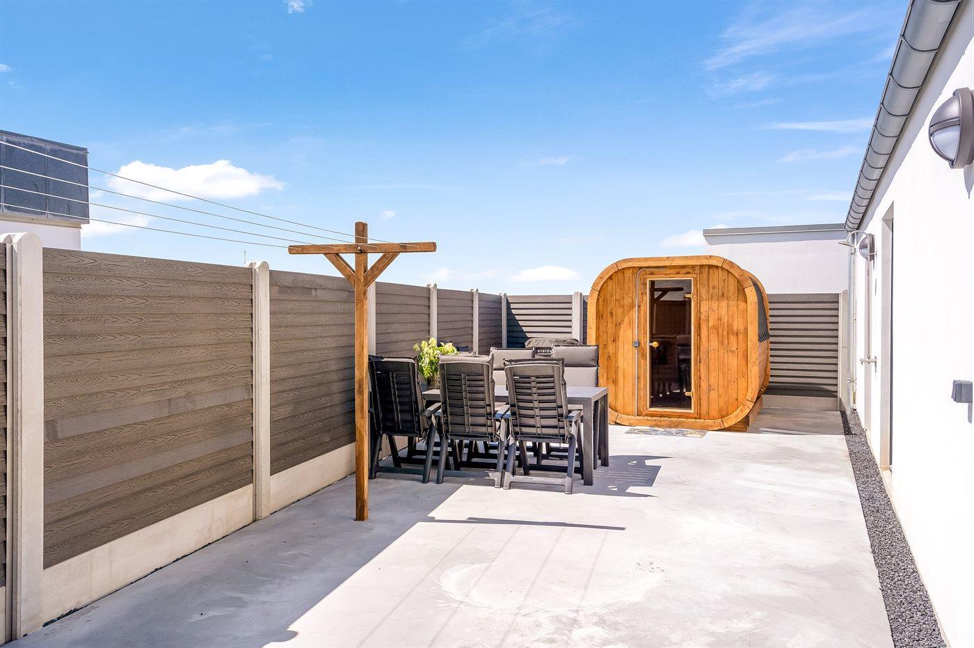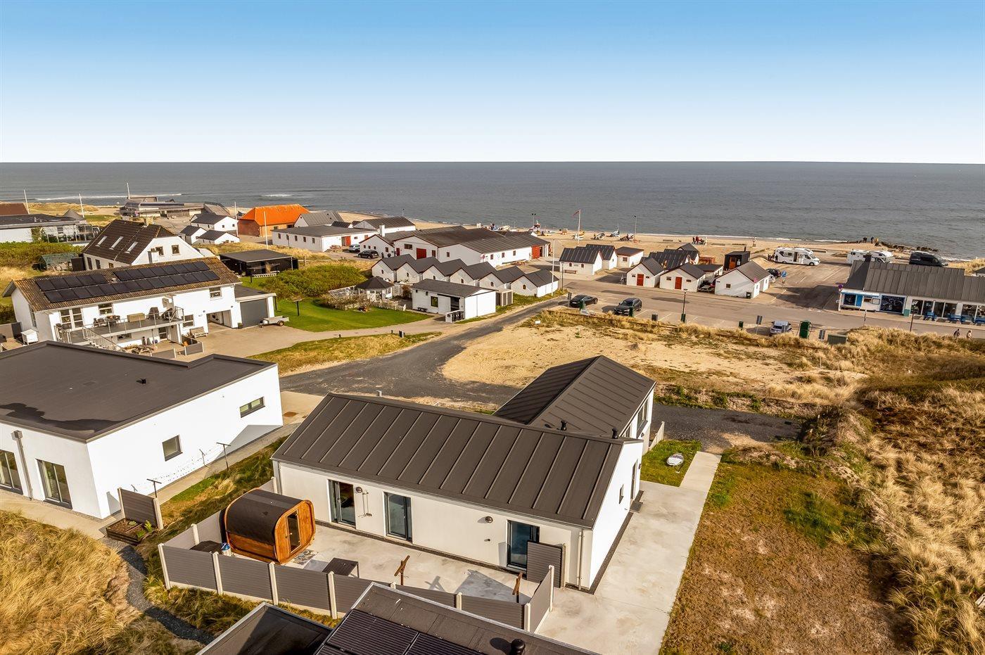 Ferieboligen er beliggende på en 800 m² stor klitgrund. Der er 75 m til havet. Nærmeste forretning er beliggende i en afstand af 1000 m. Til ferieboligen hører 75 m² terrasseareal. Heraf i alt 60 m² lukket terrasse. Udendørs sauna. Udendørs bruser. Grill til rådighed. Parkering ved ferieboligen.