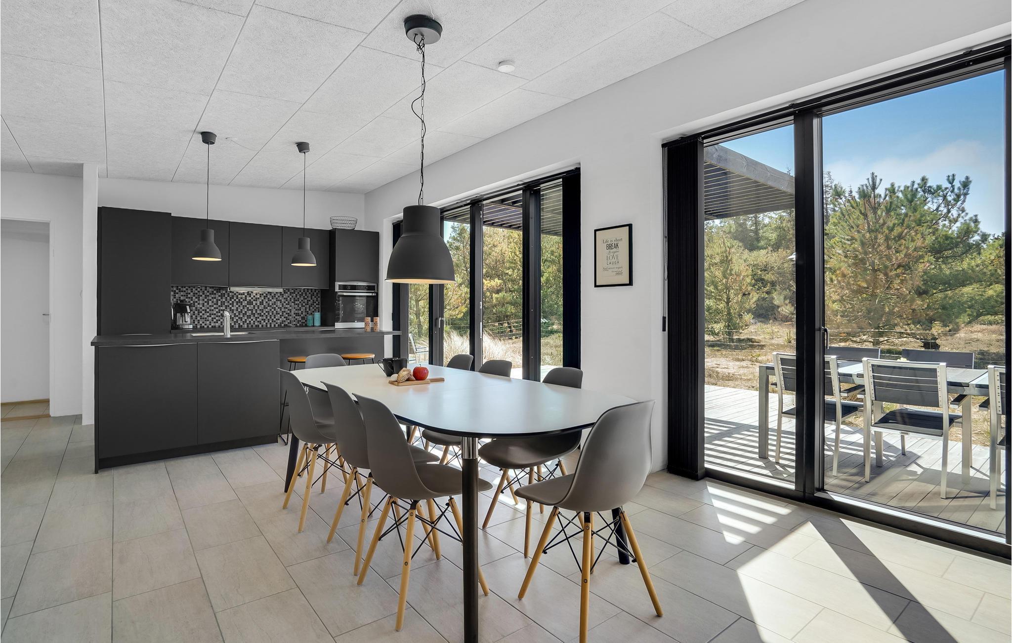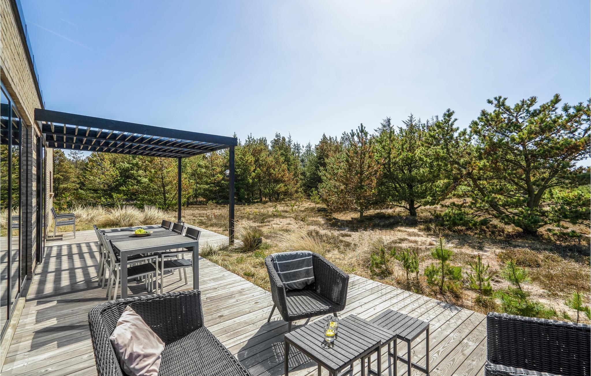 Velkommen til dette utroligt lækre sommerhus, der er yderst velindrettet og ligger i de skønneste omgivelser. Den flotte stue og det veludstyrede køkken ligger praktisk i forlængelse af hinanden, hvor I også kan sidde og hyggesnakke over maden ved spisebordet. Huset byder på tre gode soveværelser, hvor et af dem er et familieværelse til fire personer. Endvidere findes to gode badeværelser - det ene med et spabad. Gennem de store vinduespartier strømmer det ind med lys og giver jer en god udsigt til det omkringliggende landskab. Nyd den skønne terrassen, hvoraf en del er overdækket. I bor 800 m fra Vesterhavet, hvor I kan nyde synet og lyden af de brusende brændinger, der ruller ind mod kysten. Klitmøller er en velkendt surferby, der I folkemunde går under navnet Cold Hawaii pga. vind-/vandforholdene, som minder meget om Hawaii.