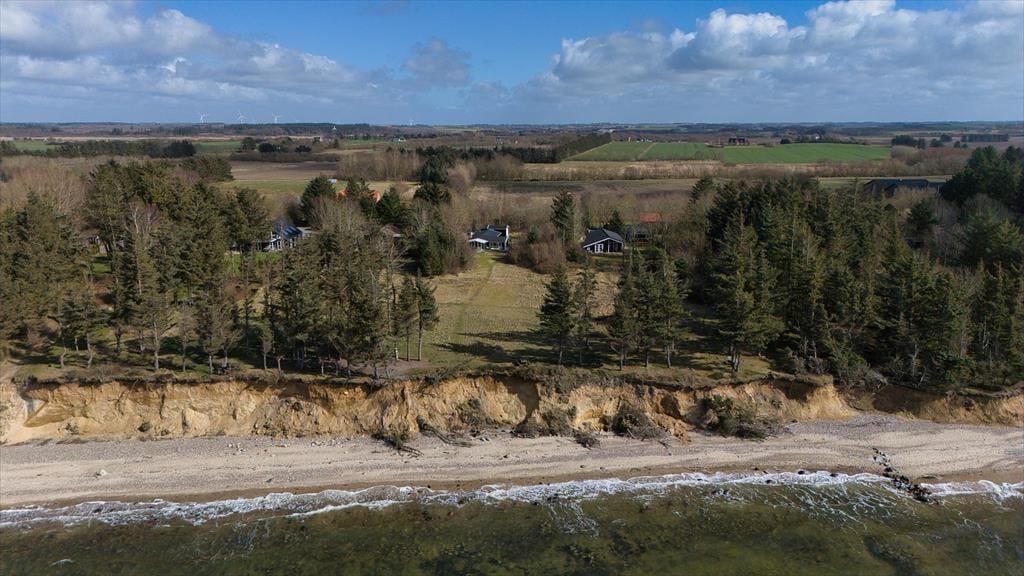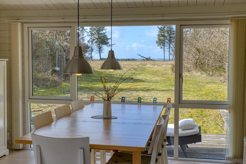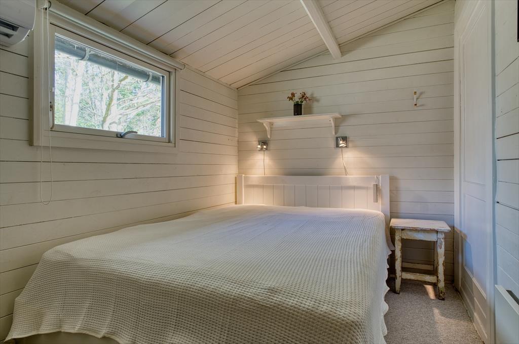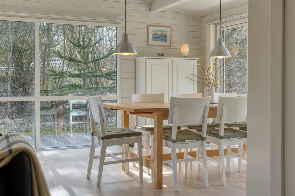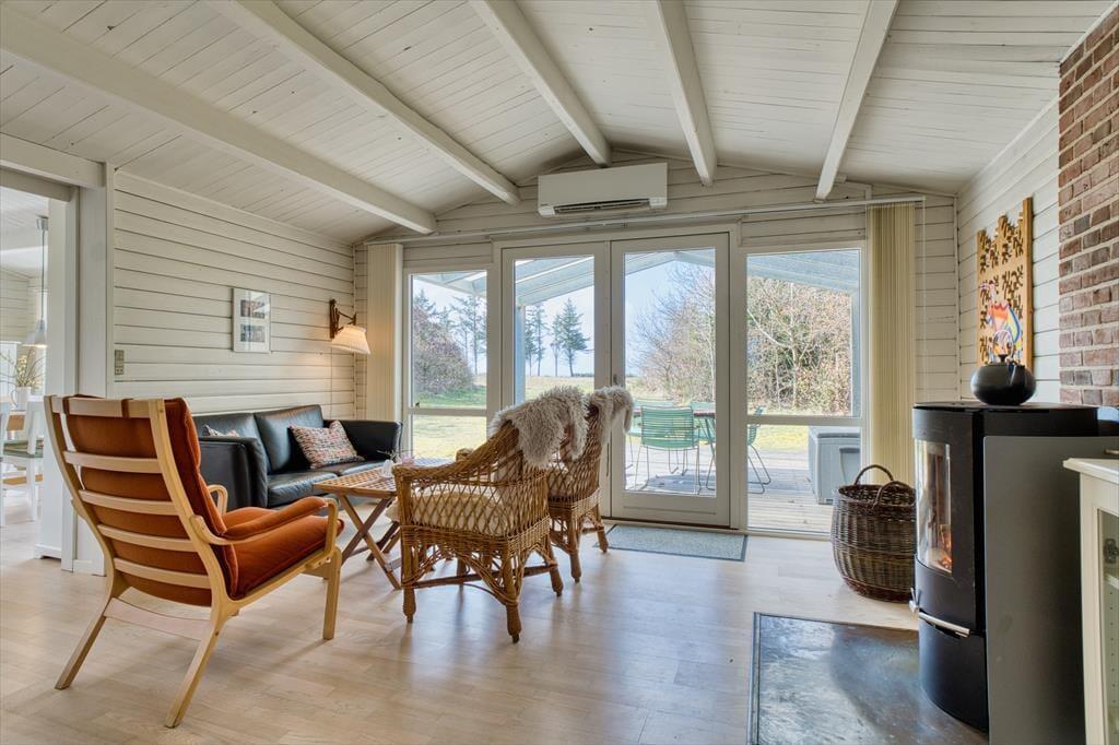 Allerede ved ankomsten mærker du den afslappede feriestemning, som strømmer fra det lyse og venlige sommerhus. Her er højt til loftet – både billedligt og bogstaveligt – og rummet er indrettet, så det inviterer til nærvær og samvær. I stuen kan I samle jer omkring brændeovnen, der knitrer hyggeligt på kølige aftener, og med det åbne opholdsrum har I altid følelsen af at være tæt på hinanden – uanset om nogle spiller kort, mens andre laver mad. Indretningen er enkel og behagelig, med et naturligt lysindfald, der strømmer ind gennem vinduerne og giver huset en dejlig lethed. Når det er sengetid, kan hele familien finde sig til rette, for her er god plads til op til syv personer, så både venner, bedsteforældre eller teenagebørn kan være med.