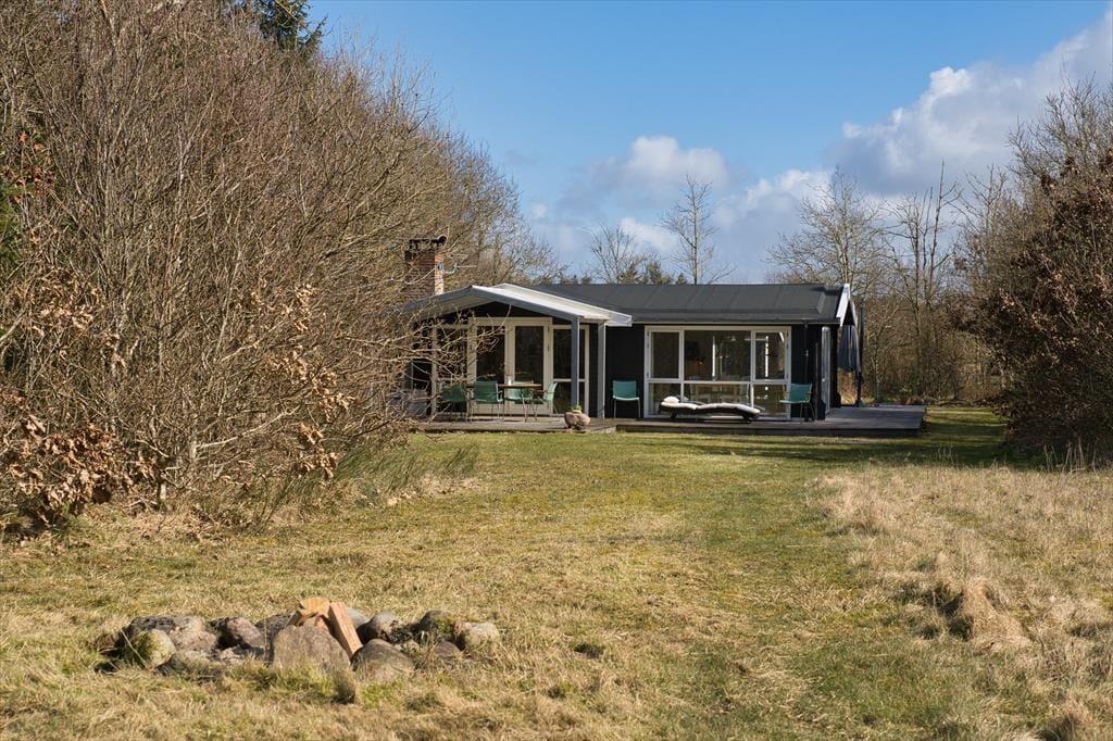 Når solen står højt, og sommerstemningen sætter ind, lokker terrassen med sine mange hyggelige kroge. Her er både åbne og overdækkede områder, så du kan finde skygge eller sol alt efter humør og tidspunkt på dagen. Det overdækkede hjørne er perfekt til morgenkaffen eller en stille stund med en bog, mens du lytter til fuglesang og måske en svag brise fra fjorden. Udenfor er der god plads til leg, afslapning og grillhygge – og har du hund(e) med, vil de elske at snuse rundt på den fredelige grund. Her kan I nyde lange feriedage i jeres helt eget tempo – måske med en frokost under åben himmel eller en sommeraften med kølig hvidvin og grillmad under det overdækkede tag, mens duggen falder stille.