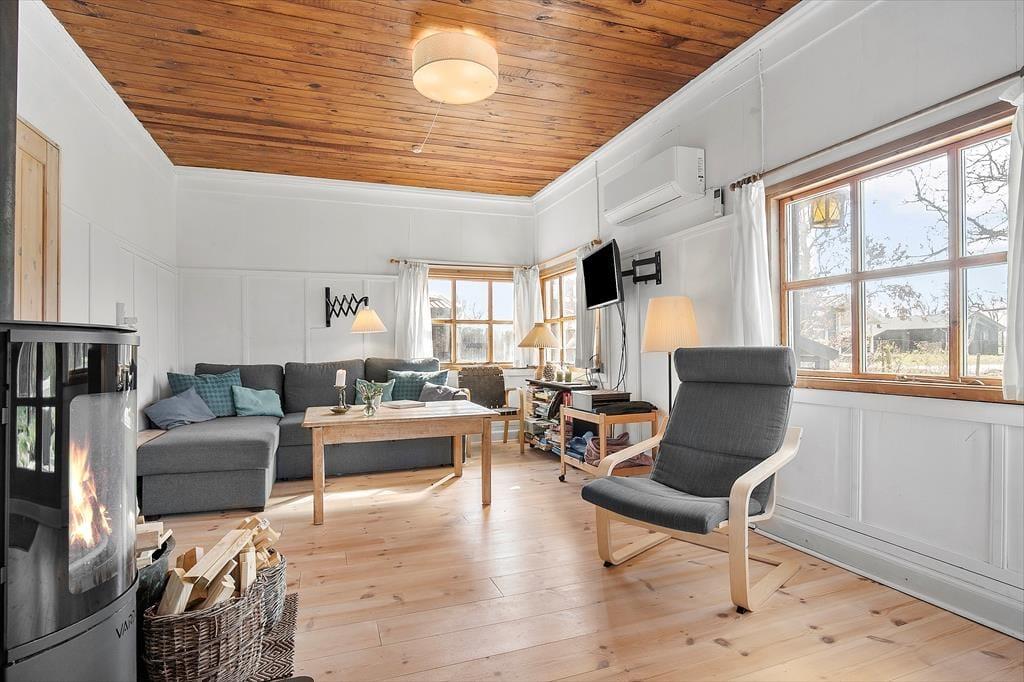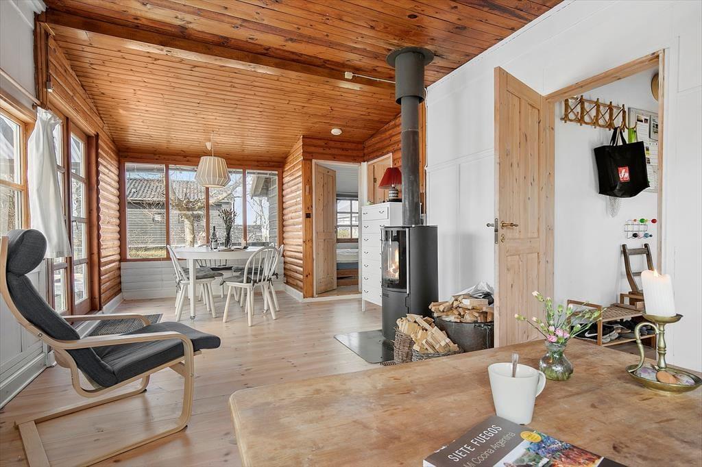 Feriehuset er indrettet med separat køkken og opholdsstue. Køkken med keramisk komfur og køleskab med fryser. Opholdsstue med udgang til terrasse, hyggelig spisekrog, dobbelt sovesofa, brændeovn og SmartTV med adgang til streamingtjenester (kræver eget login) . To soveværelser, et med dobbeltseng, og et med to enkeltsenge. Separat Anneks, hvor der er toilet og en bruseniche. Huset opvarmes med varmepumpe og brændeovn. Der er desuden en barnestol til rådighed