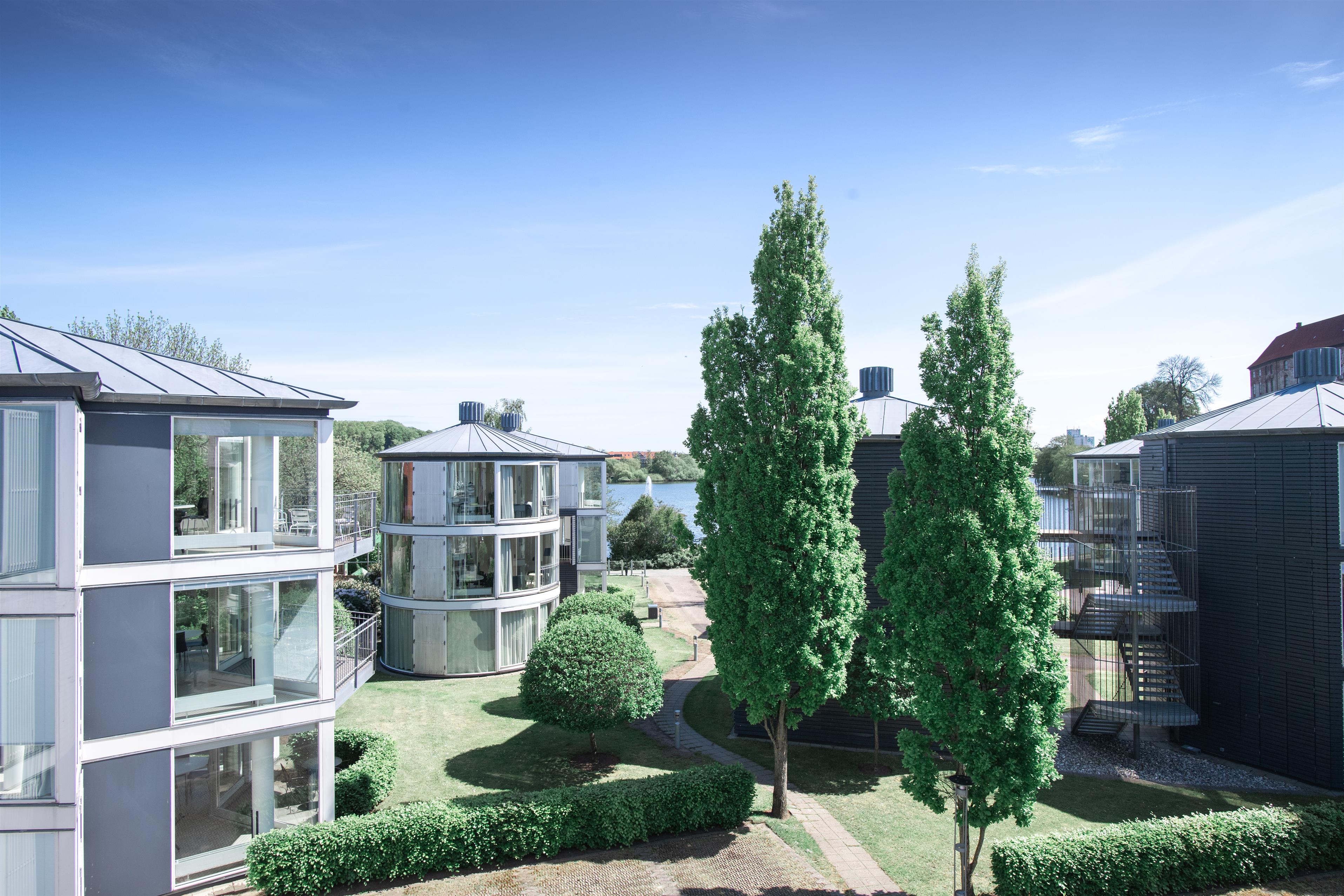Gårdlejlighederne hos Kolding Hotel Apartments er både placeret i de fritliggende punkthuse, samt i de huse som omkranser punkthusene.