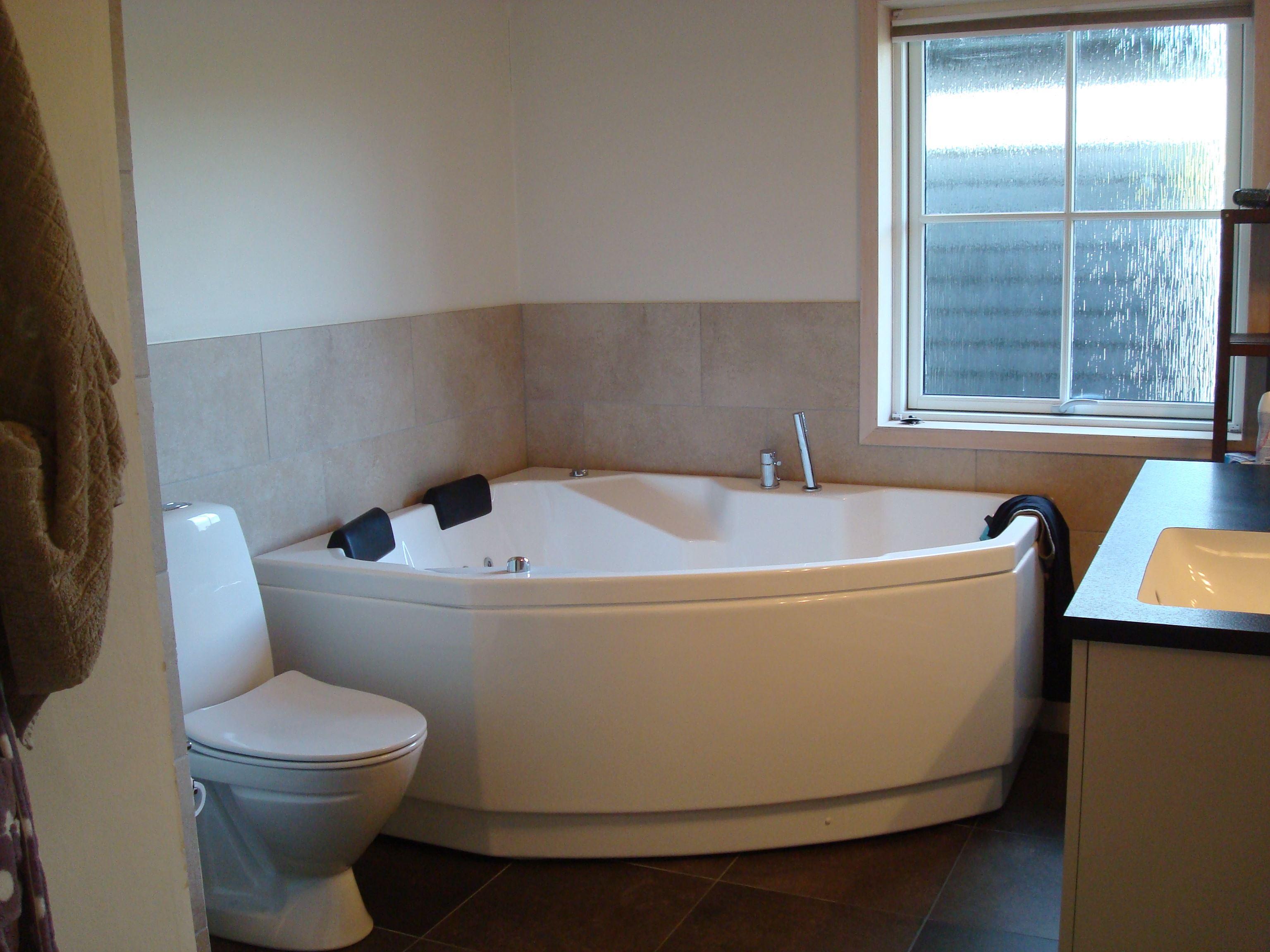 Dette store køkken alrum går i kip og har en hems de større børn kan lege på. Her er også en brændeovn, som er placeret i midten af rummet. Udover dette skønne lyse rum, har huset tre soveværelser; det ene med to enkeltsenge og de to andre med en dobbeltseng hver. Dog er det ene soveværelse ekstra luksuriøst, da det fører ind til et badeværelse med spabad. Dette badeværelse er et af to badeværelser i dette hus.