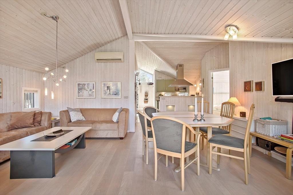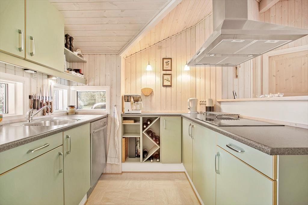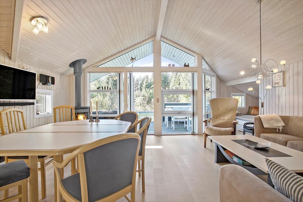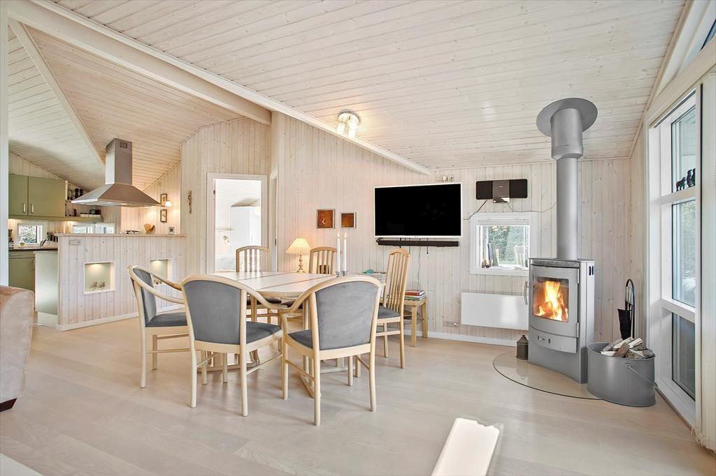 Det 79 m2 store træsommerhus er opført i 2004 og har en lys og indbydende indretning. Planløsningen passer perfekt til seks personer, for den byder på tre gode soveværelser, der alle er udstyret med dobbeltsenge. Badeværelset har foruden bruser og vaskemaskine også en sauna, der lægger op til rendyrket afslapning – når I altså ikke flader ud i stuens sofa med ild i brændeovnen og en god film på fladskærmen. Har I brug for en middagslur, er stuens alkove perfekt til formålet, og når det er ved at være spisetid, kan I gå i gang med at trylle et lækkert feriemåltid frem i det åbne og velindrettede køkken.